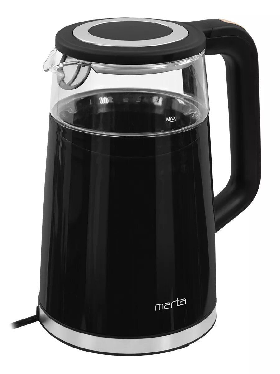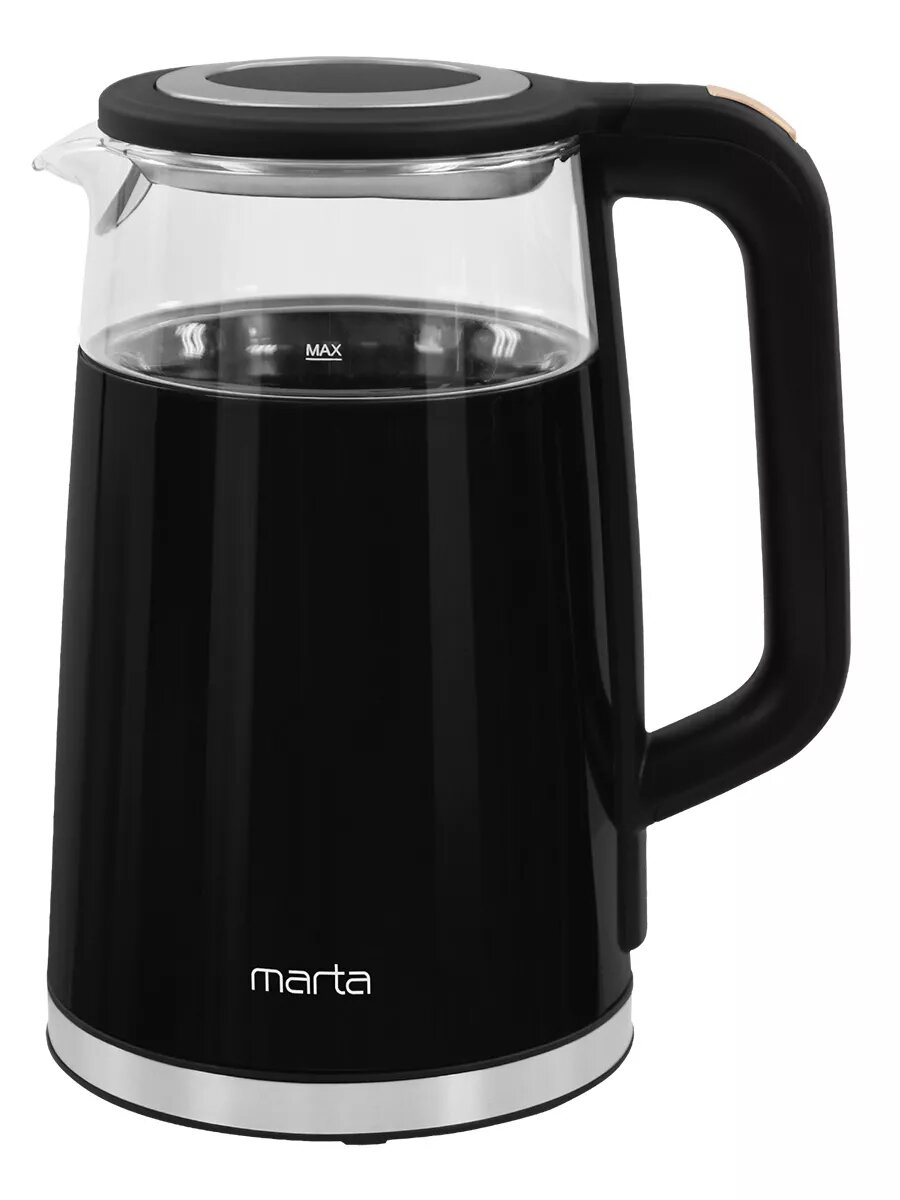 Электрический чайник MARTA MT-KT4655A черный стеклянный с заварником, 1.8 л