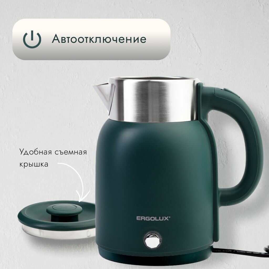 Чайник электрический металлический 1,6л / Ergolux / (1800Вт, 240В), зеленый