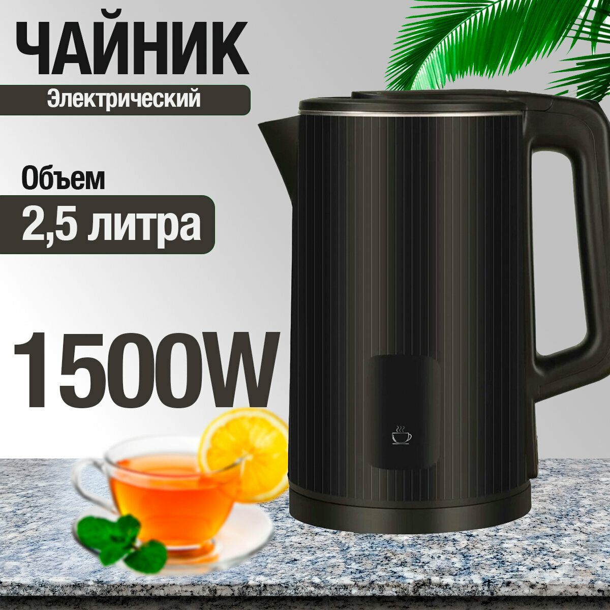 Чайник электрический, электрочайник, объем 2,5 литра, мощность 1500 Вт информация: