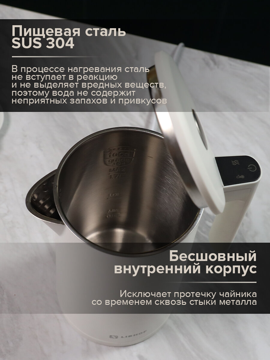 Чайник электрический с подогревом и терморегулятором Libhof EK-1710 matte white информация: