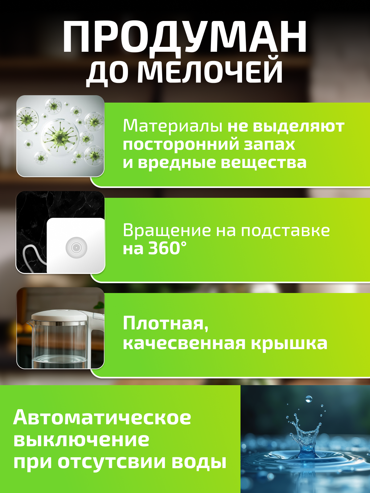 Электрический чайник EnviTec Global, 1800 Вт, пластиковый корпус, вместительный белый 3 349 ₽