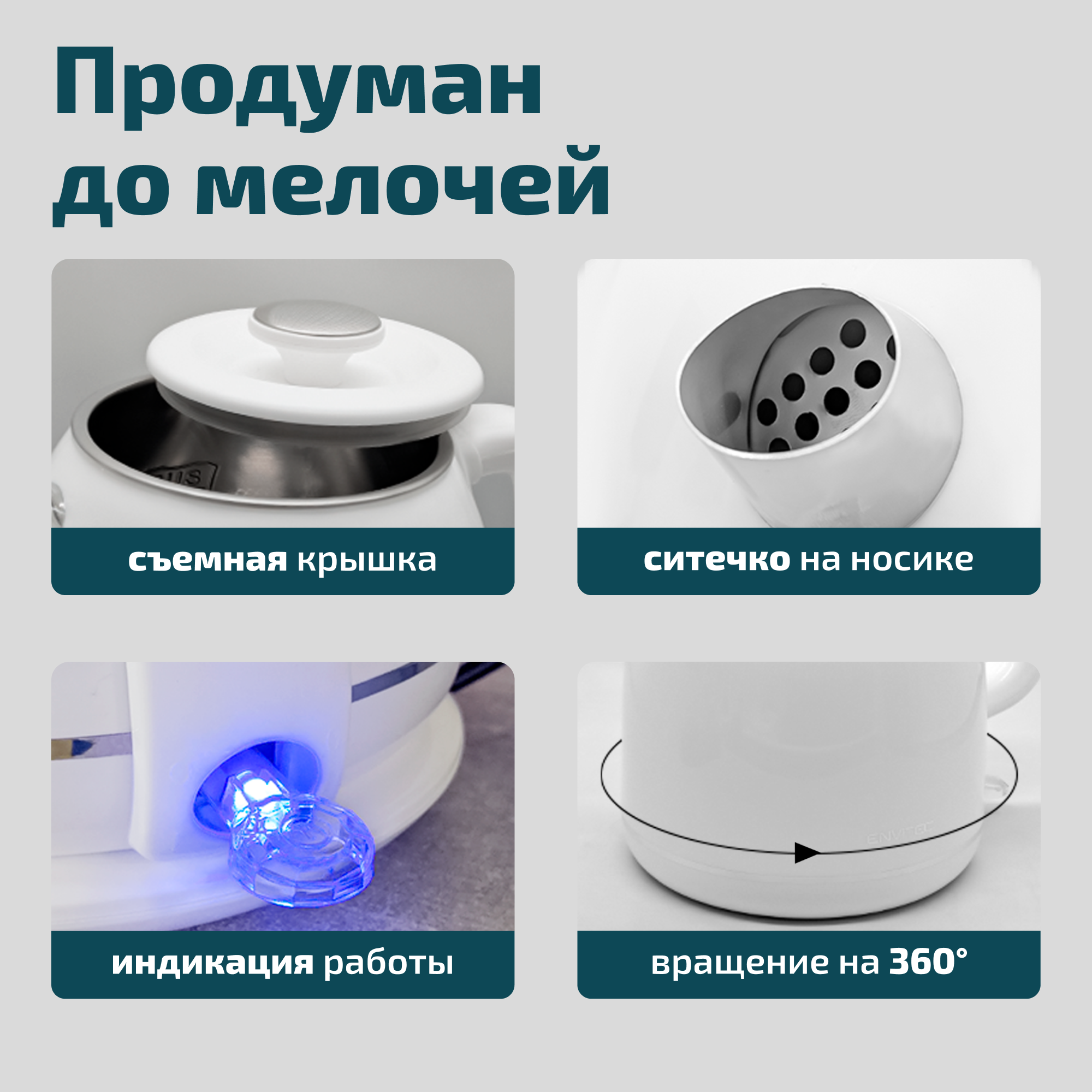 Отзывы на Электрический чайник EnviTec Global, 1800 Вт, пластиковый корпус, вместительный белый