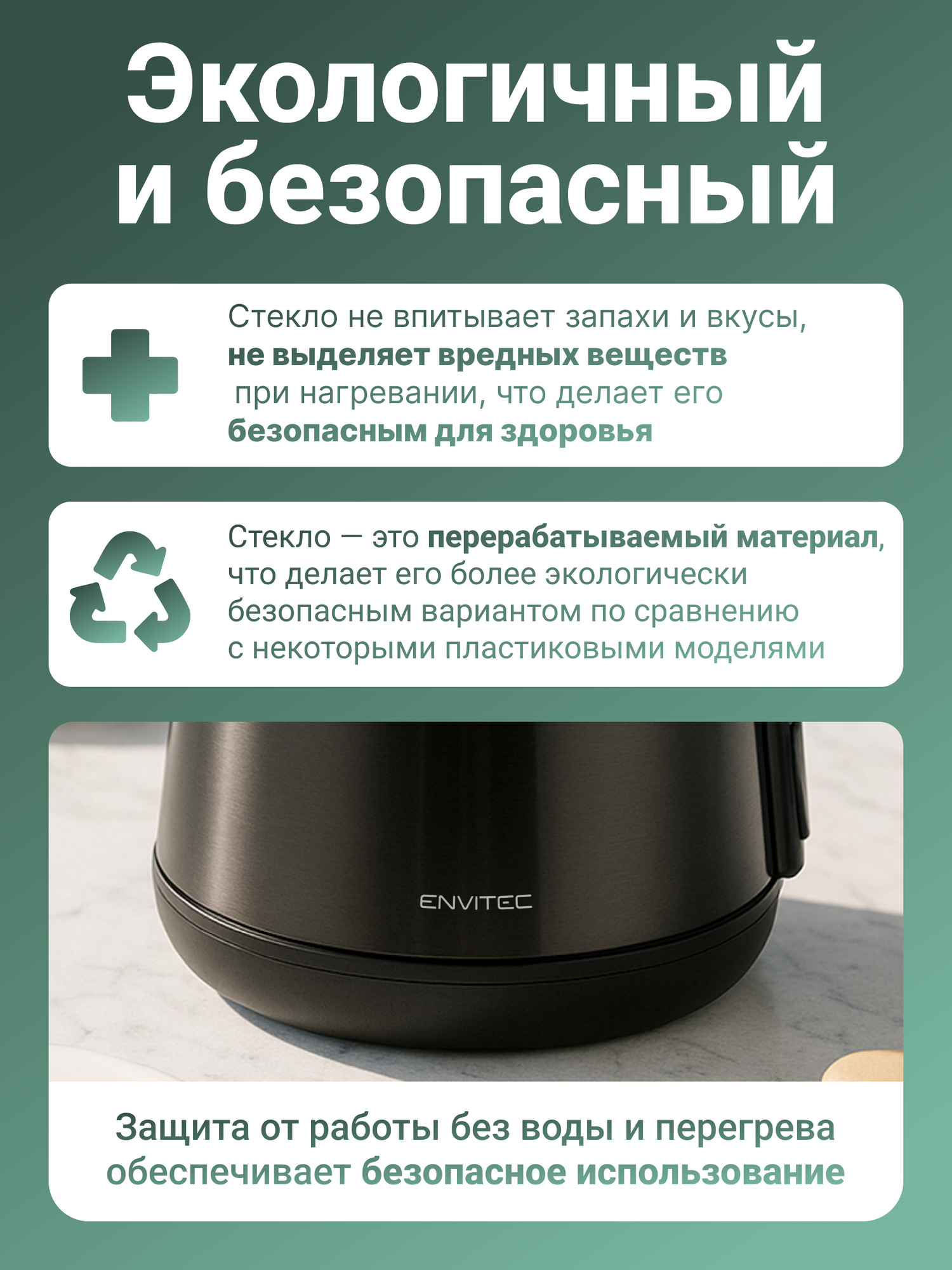 Отзывы на Электрический чайник EnviTec K19, мощность 1350Вт, корпус металл, стекло, пластик, черный
