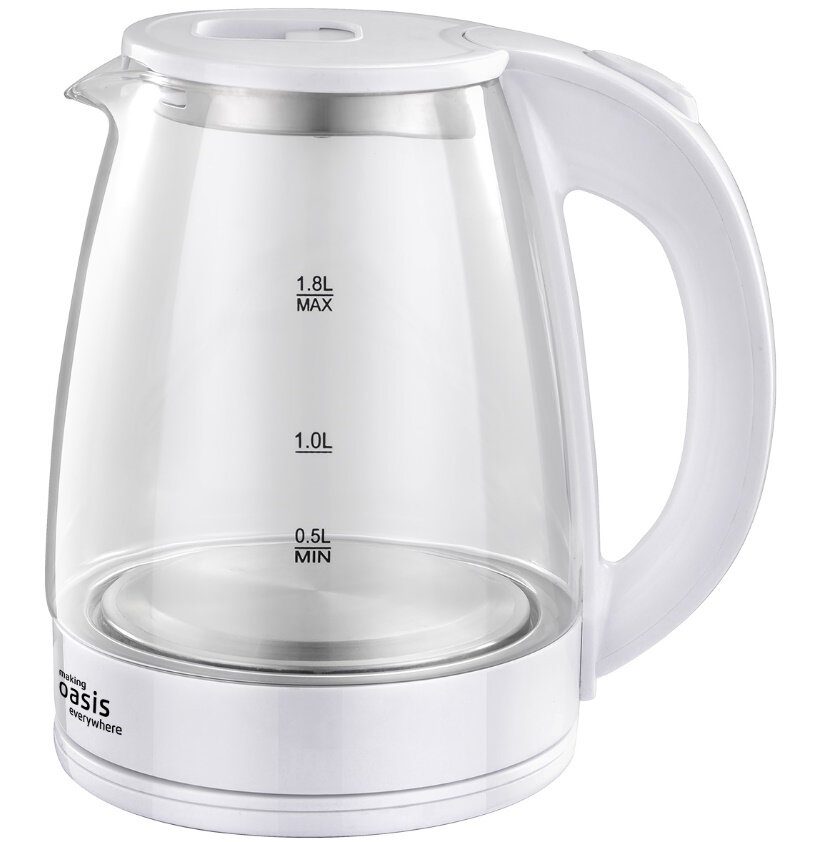 10 цен на Чайник электрический Oasis K-8GW, 1,8 л, 2000 Вт, стекло, белый