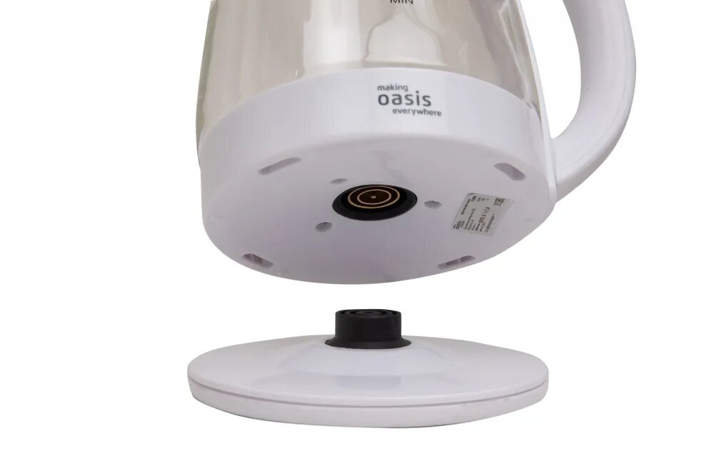 Чайник электрический Oasis K-8GW, 1,8 л, 2000 Вт, стекло, белый информация: