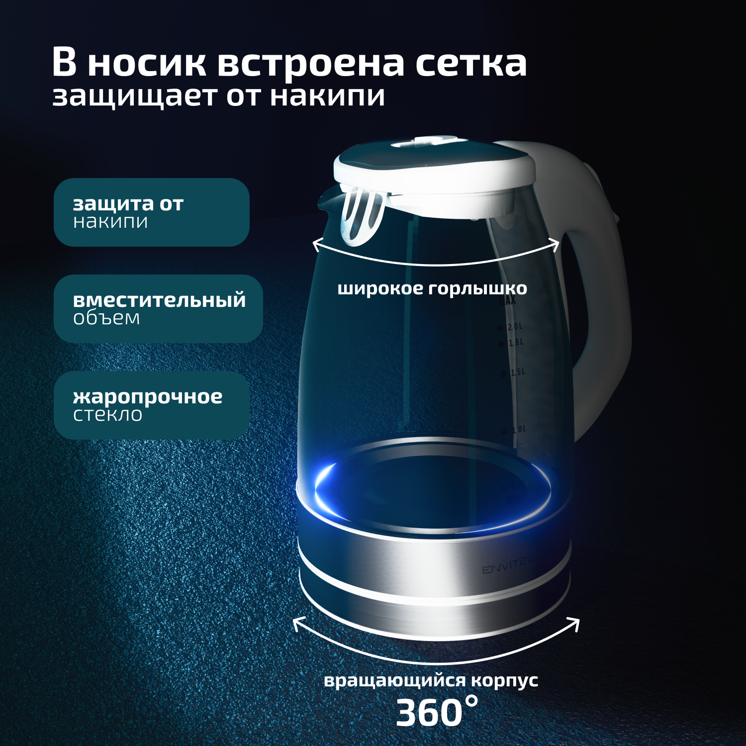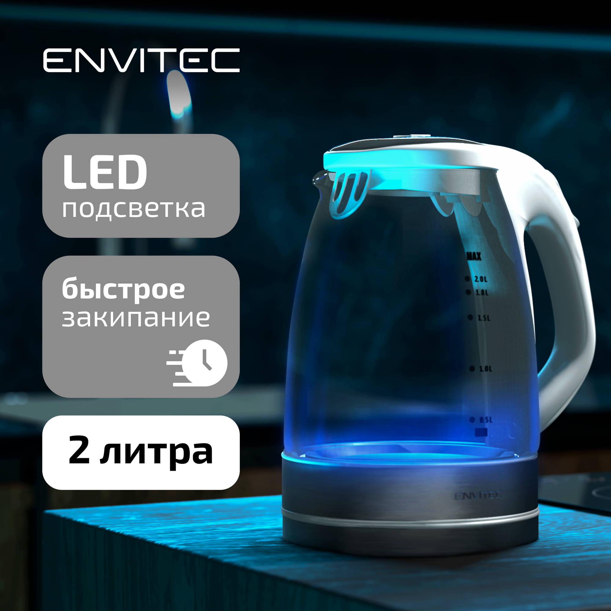 10 цен на Чайник электрический с подсветкой Envitec E-Kettle Lite K5 белый