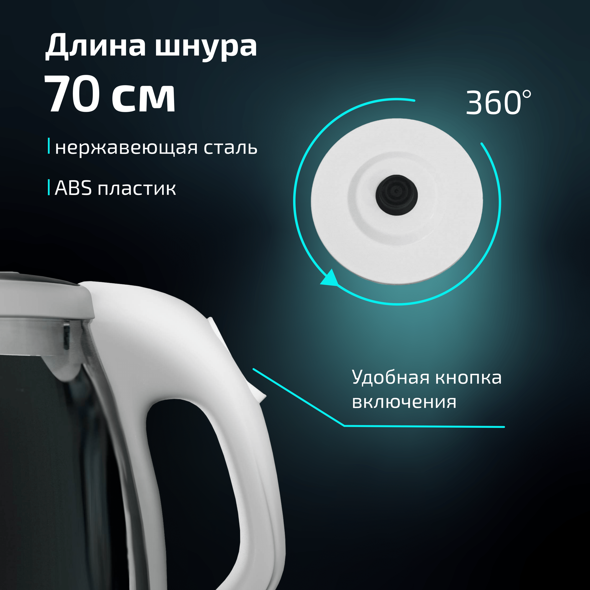 Чайник электрический с подсветкой Envitec E-Kettle Lite K5 белый информация: