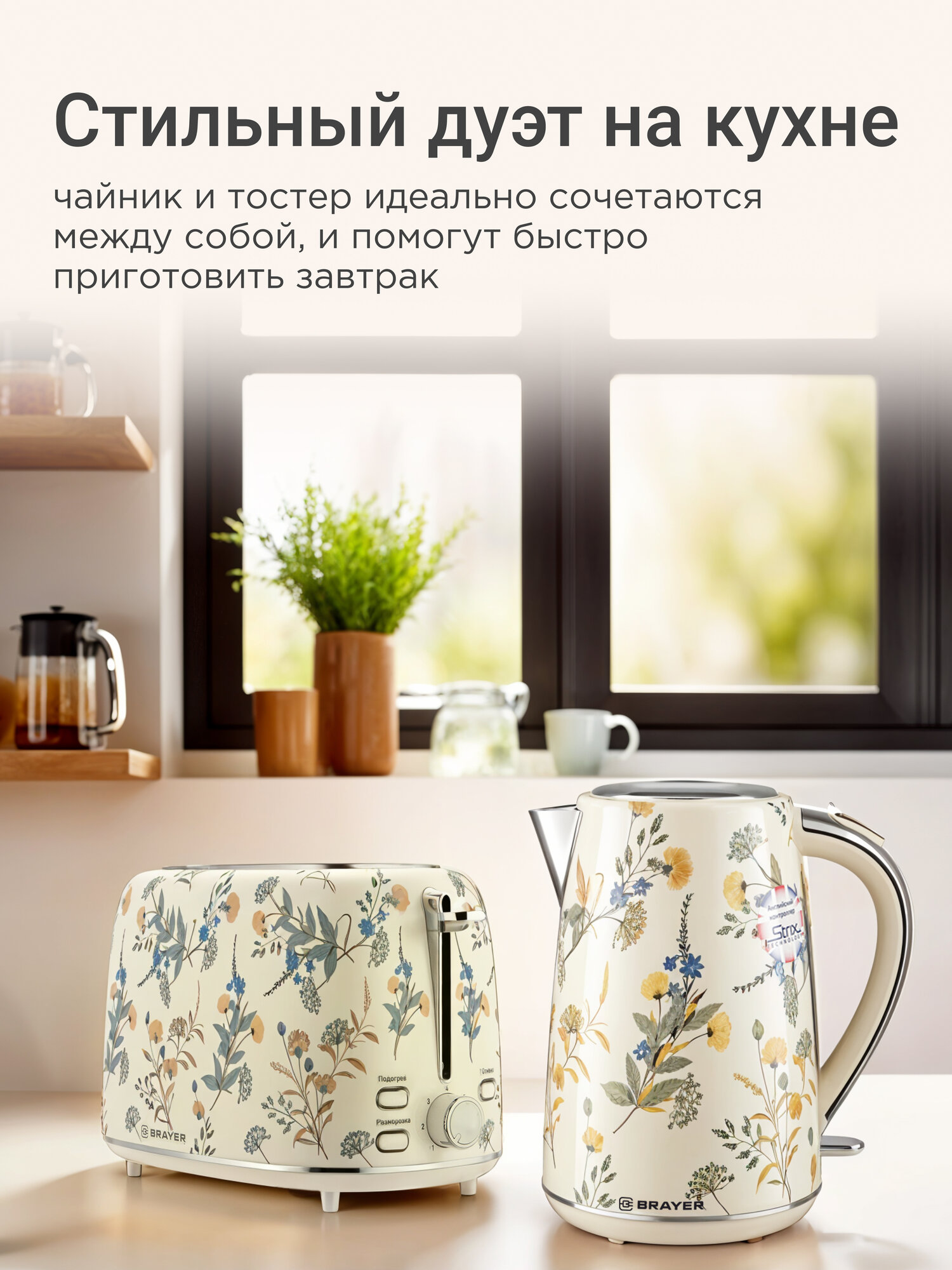 10 цен на Чайник электрический BRAYER BR1083YE+ Тостер BRAYER BR2103YE