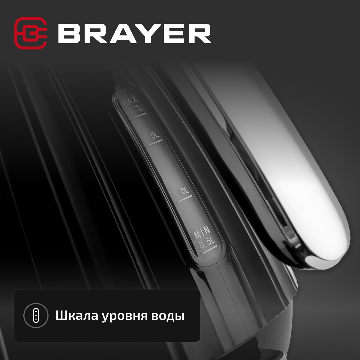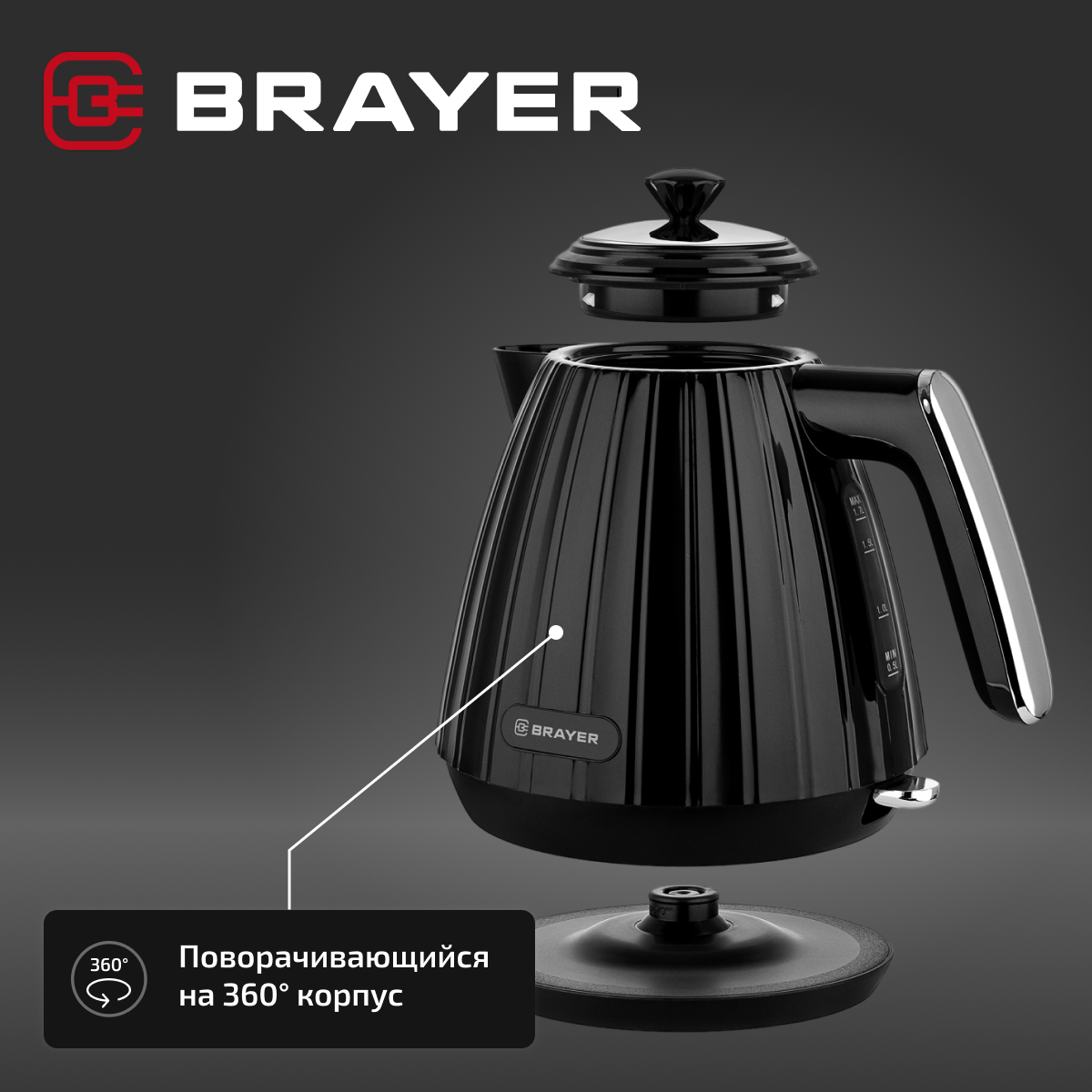 Чайник электрический BRAYER BR6104BK, 2200 Вт, 1,7 л, черный/пластик