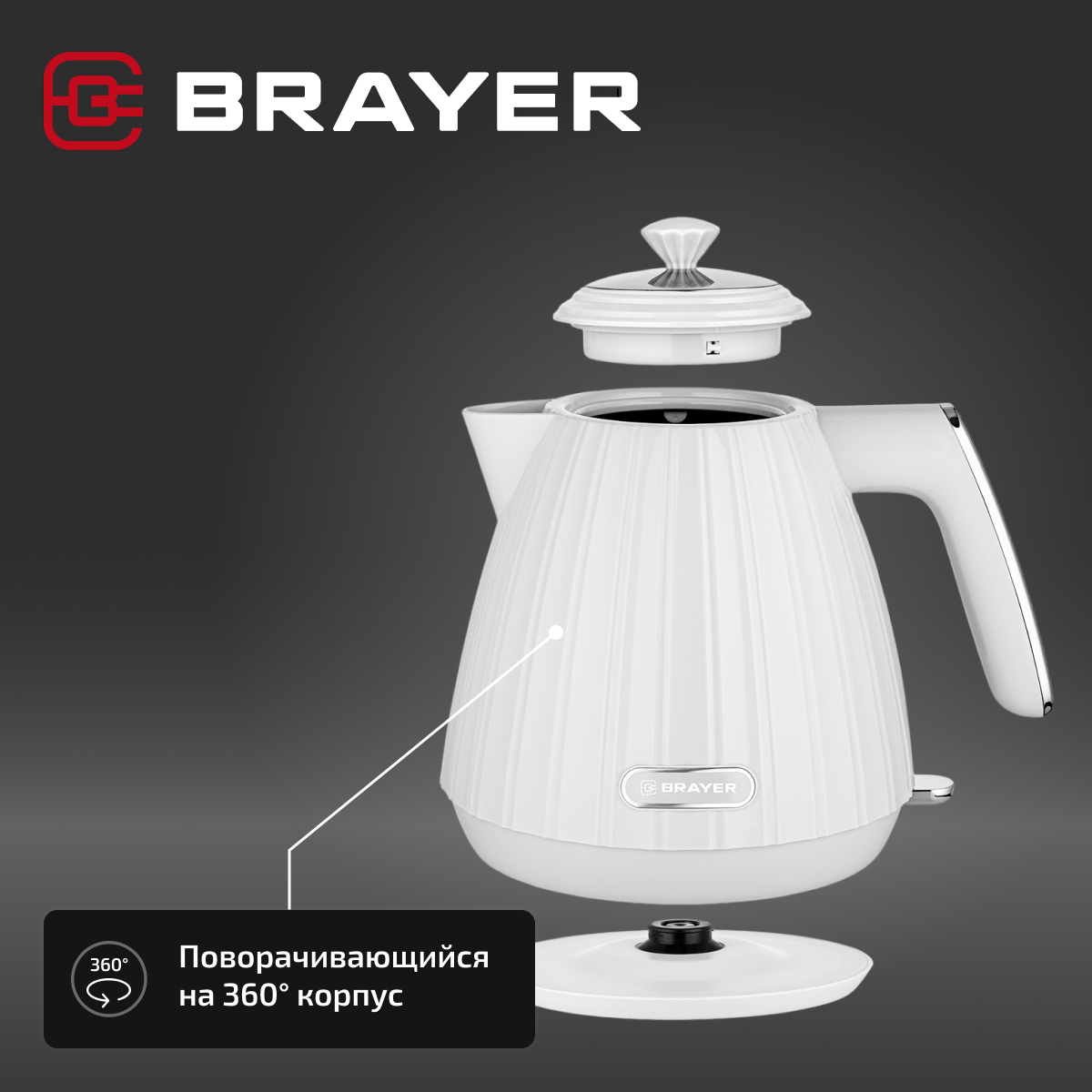 Чайник электрический BRAYER BR1074WH, 2200 Вт, 1.7л, пластик, цвет белый информация: