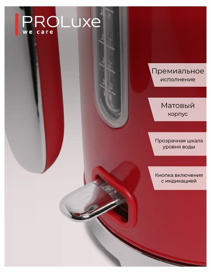 Электрочайник PROLuxe Stylish красный PL-WKRED01, Strix,1,7 литра,2400 Вт информация: