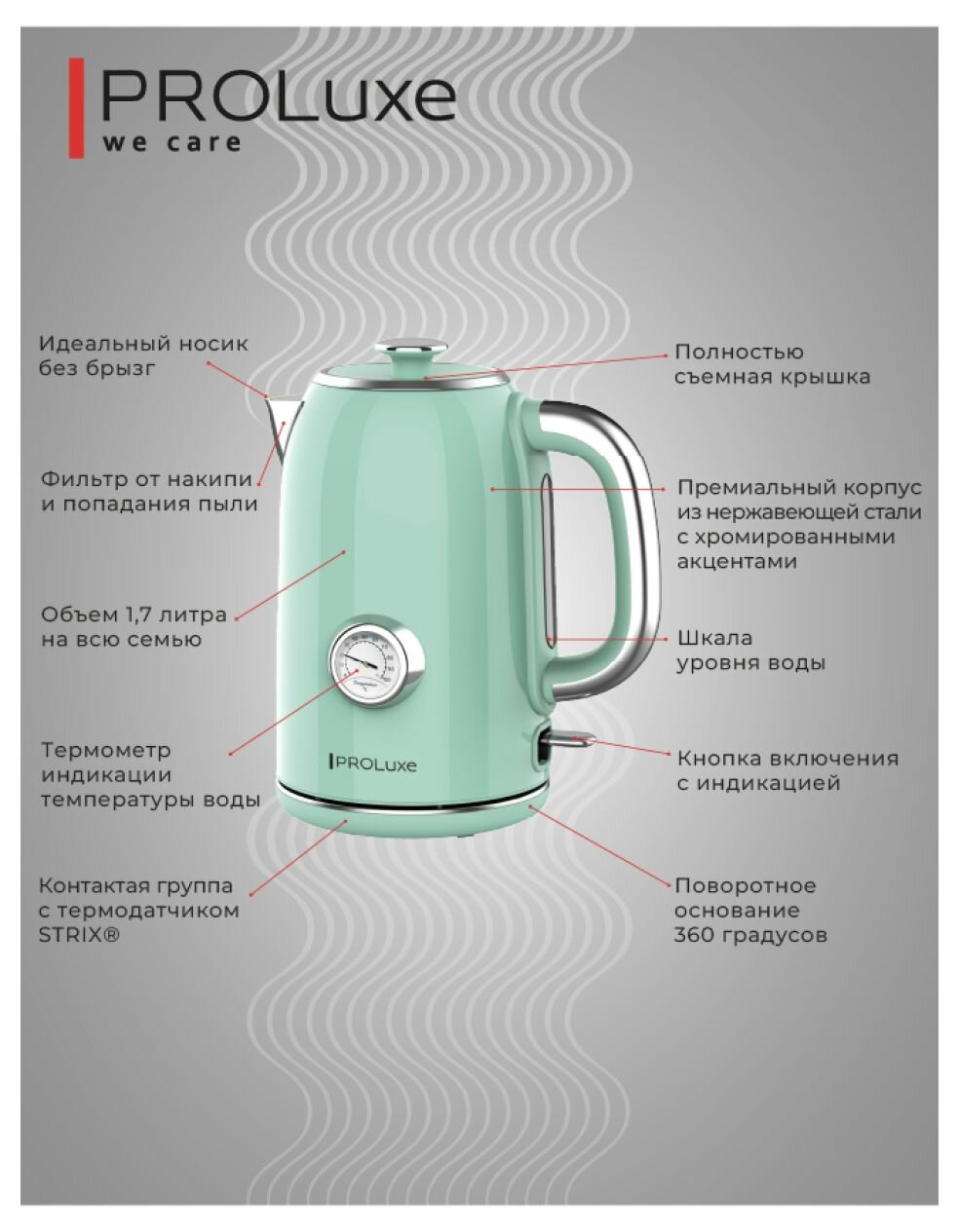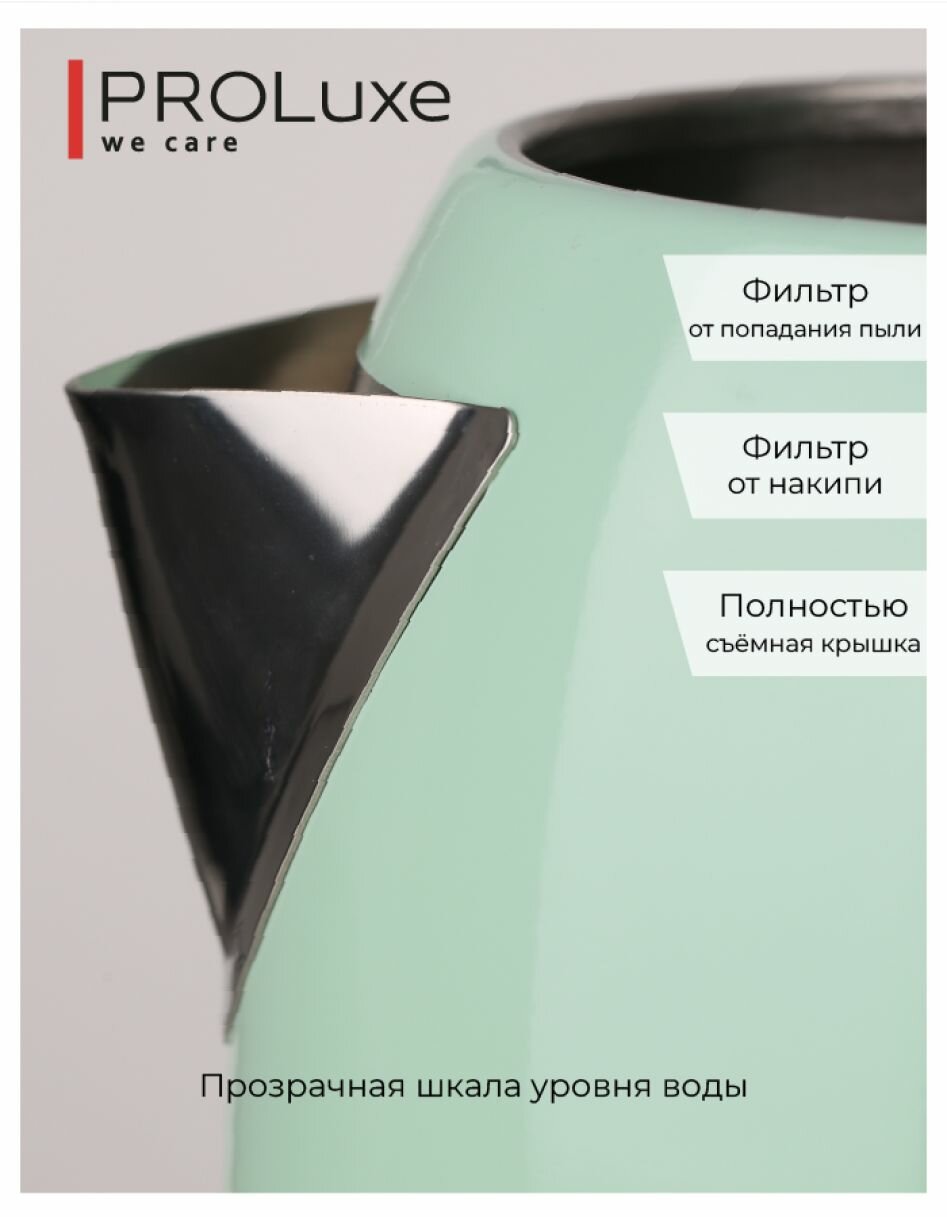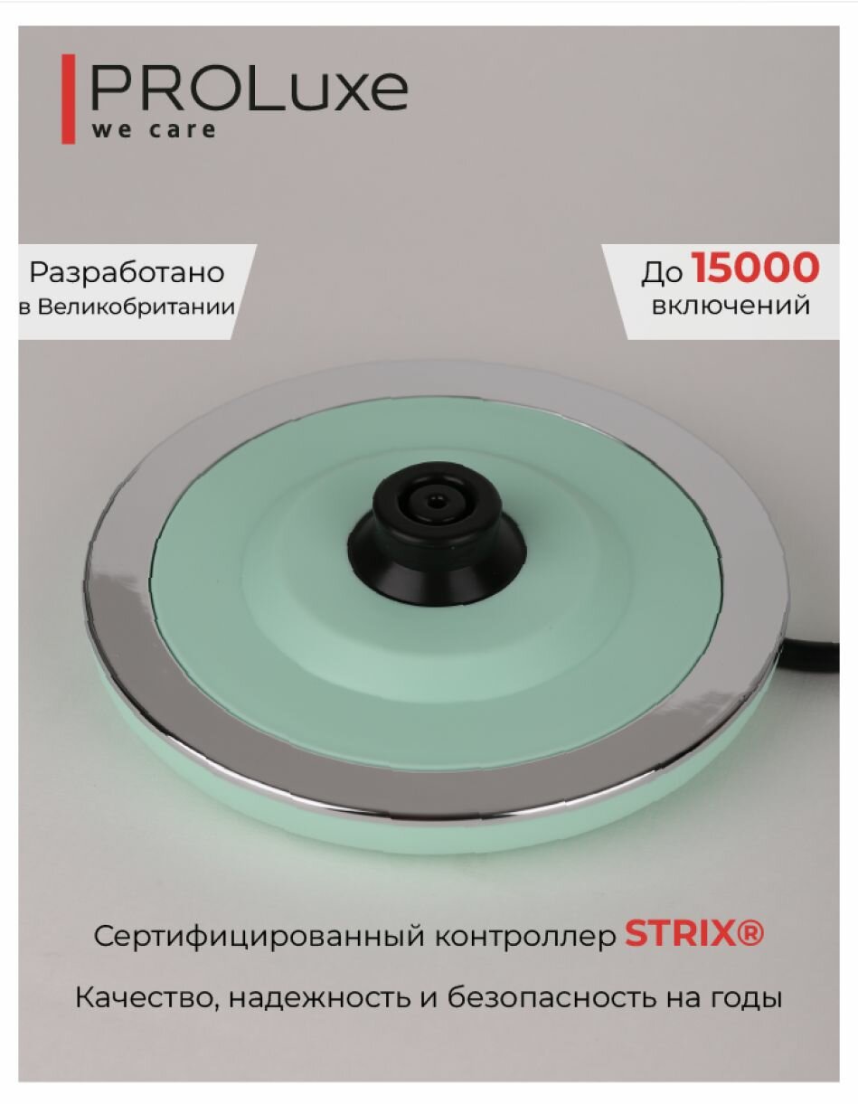 Электрочайник PROLuxe Stylish зеленый PL-WKGRN01, Strix,1,7 литра,2400 Вт информация: