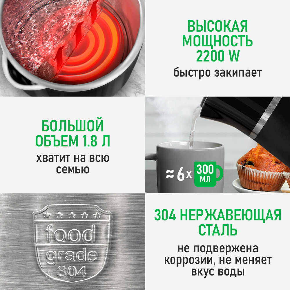 Электрический чайник MARTA MT-KT4651A черный металлический 1,8 л информация: