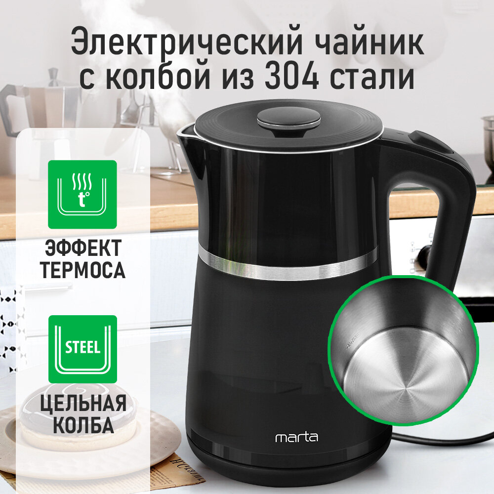 Отзывы на Электрический чайник MARTA MT-KT4651A черный металлический 1,8 л