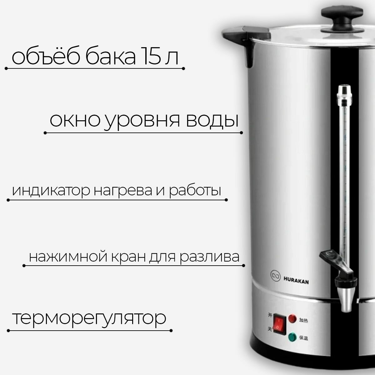Термопот Hurakan HKN-HVB15, нержавеющая сталь, серебристый, мощность 1800Вт, 15л информация: