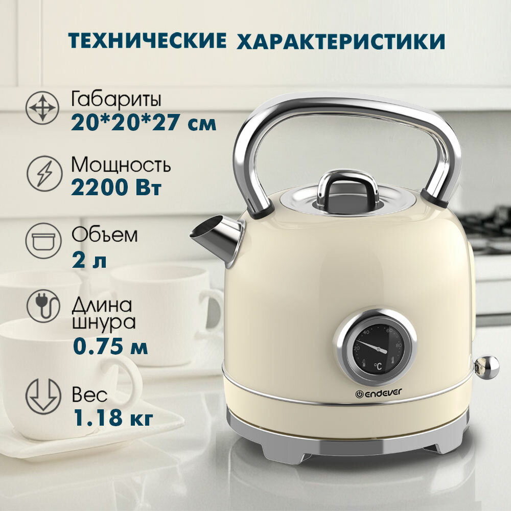 Чайник электрический металлический Endever KR-374S / 2л / 2200Вт информация: