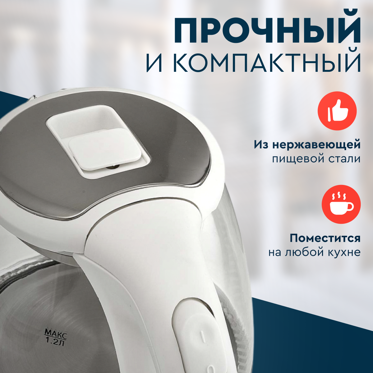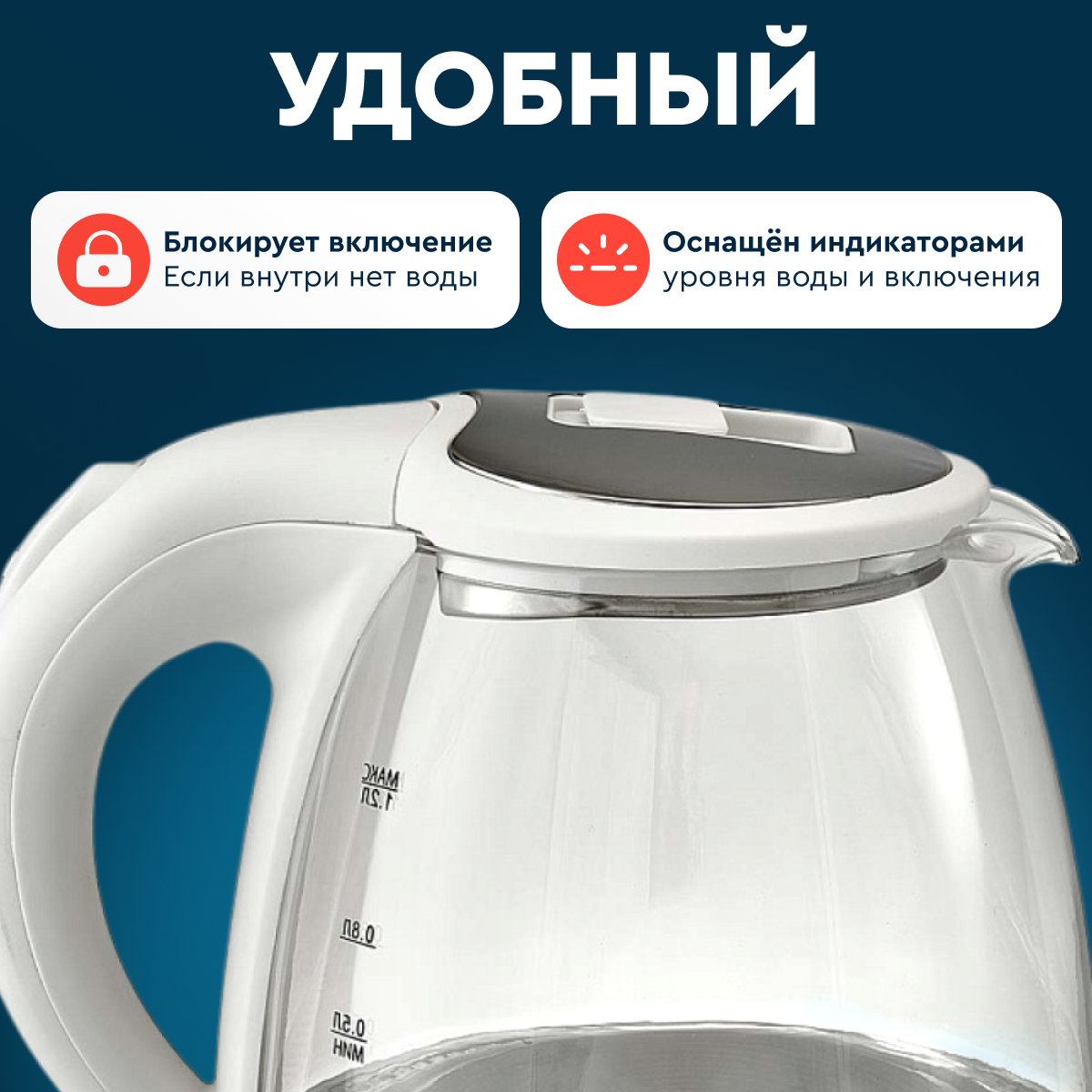 Чайник Delta DL-1121 корпус из жаропрочного стекла, 1.2л, белый информация: