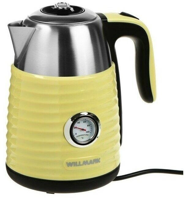 Отзывы на Чайник электрический Willmark WEK-1738PST 1.7 л, двойные стенки, эффект термоса, термометр, 2200 Вт, желтый