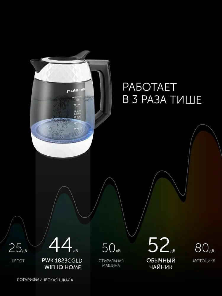 Электрический чайник Polaris PWK 1823CGLD WIFI IQ Home с подссветкой / Электрочайник тихий, белый информация: