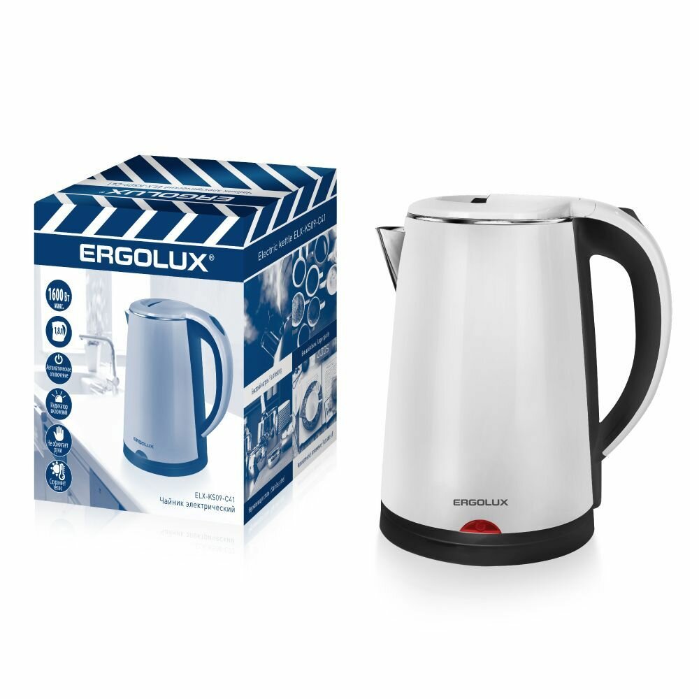 Электрический чайник Ergolux, металлический, пластик, 1.8л, белый информация:
