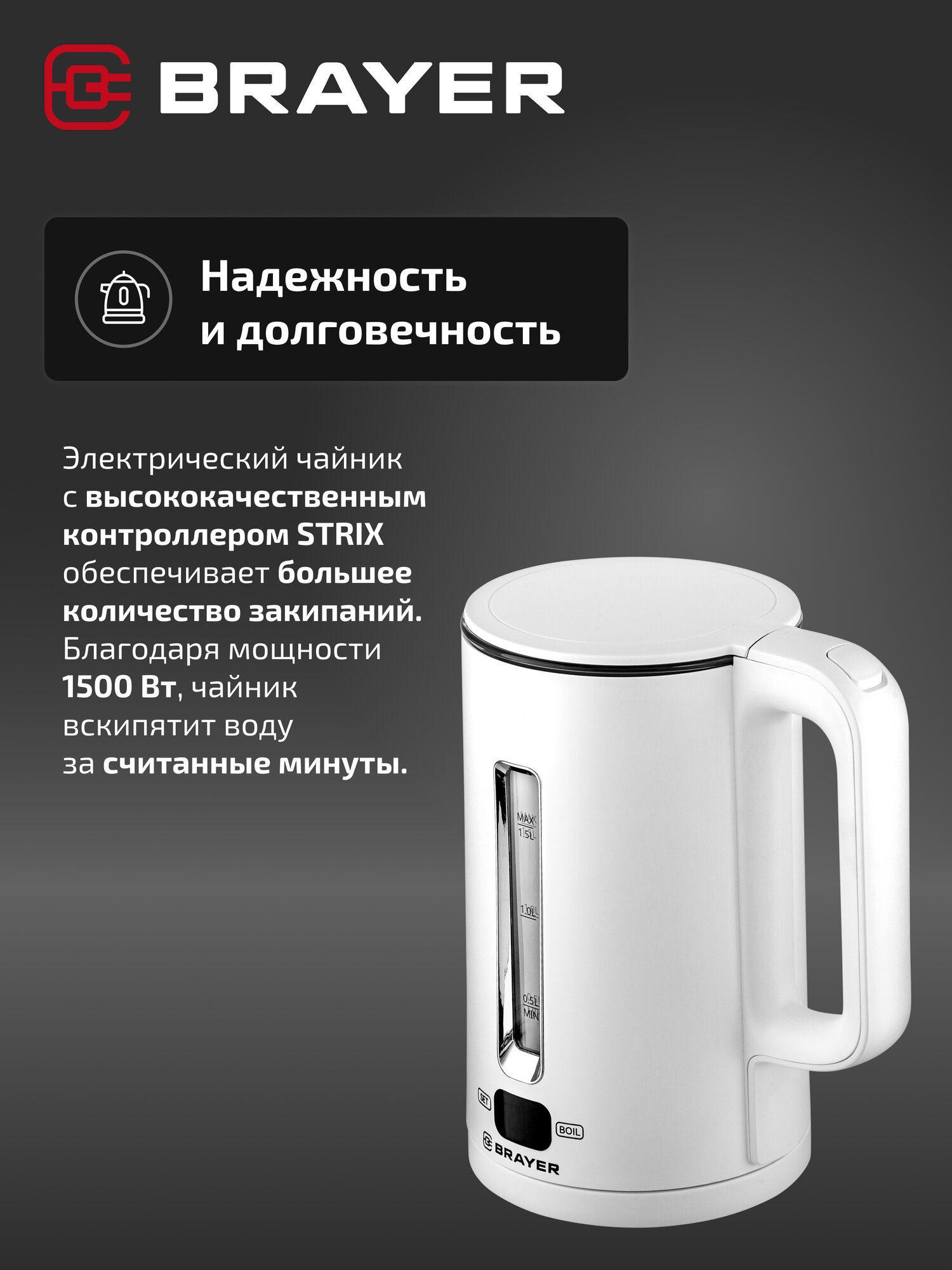 10 цен на Чайник электрический BRAYER BR6100, Strix, 1500 Вт, 1,5 л, Cool Touch, cенсорное управление