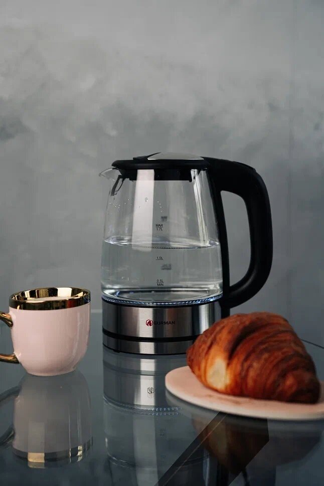 Отзывы на Чайник электрический GURMAN GR-2020G, 1.7 л, 2200 Вт, LED подсветка, вращение на 360 градусов