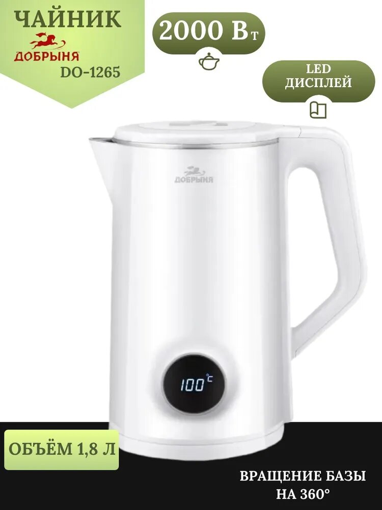 Чайник электрический ДОБРЫНЯ DO-1265, 2000 Вт, 1,8 л, LED дисплей информация: