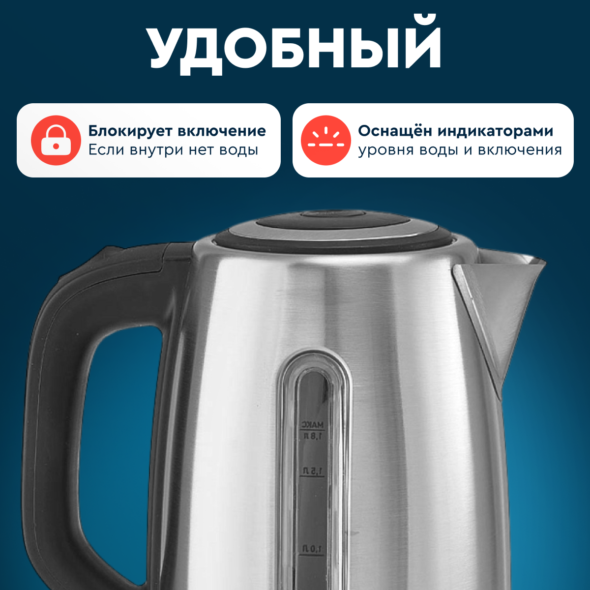 Чайник электрический Delta Lux DE-1015, нержавеющая сталь, 1.8 л, черный информация: