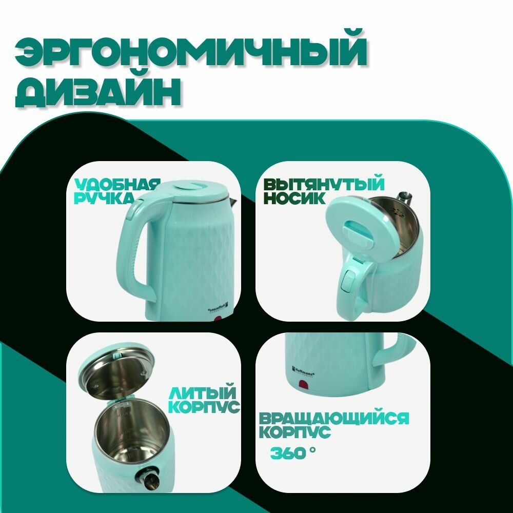 Hoffmans Электрический чайник Чайник 2.5 л, голубой/бирюзовый информация: