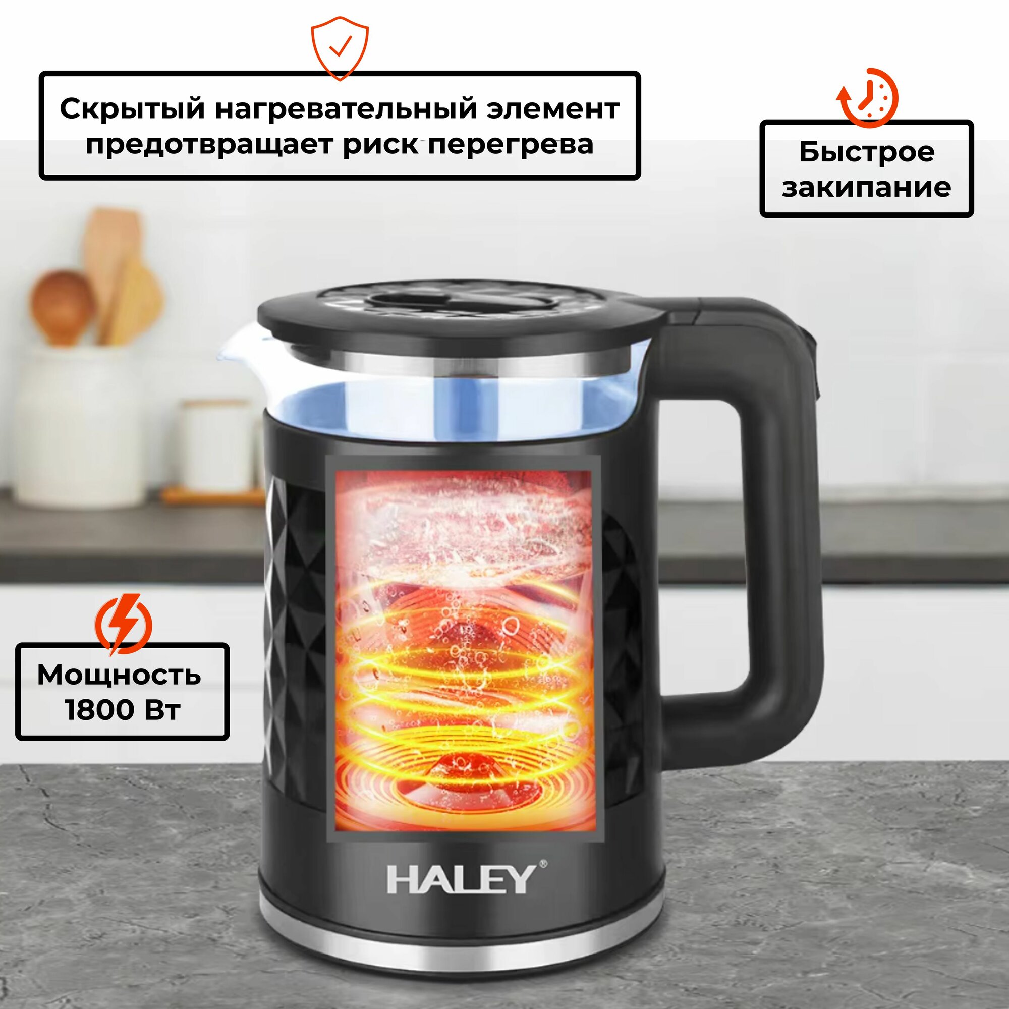 Электрический чайник HALEY-8855, стеклянный, черный, объем 1.8 литра, мощность 1800 Вт, быстрый кипяток, защита от перегрева. 2 199 ₽