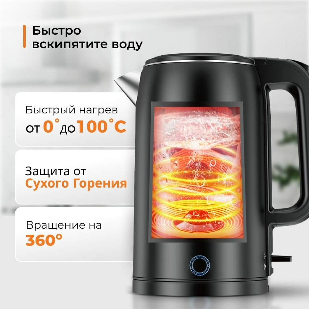 Чайник электрический черный, LED подсветка, объем 2,2 литра 2 382 ₽