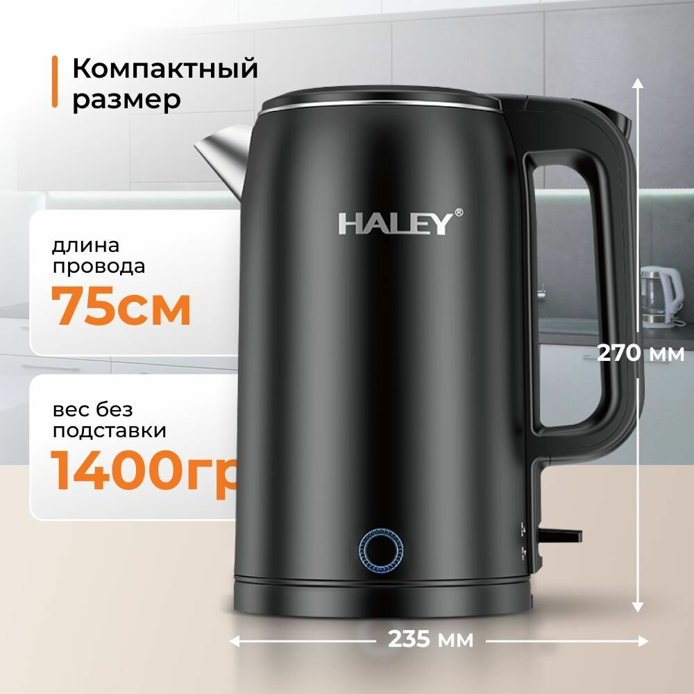 Электрический чайник HALEY-8886 черный жемчуг чайникобъемом 2.3 л, мощностью 1800 Вт, обеспечивающий быстрый кипяток и защиту от перегрева. информация: