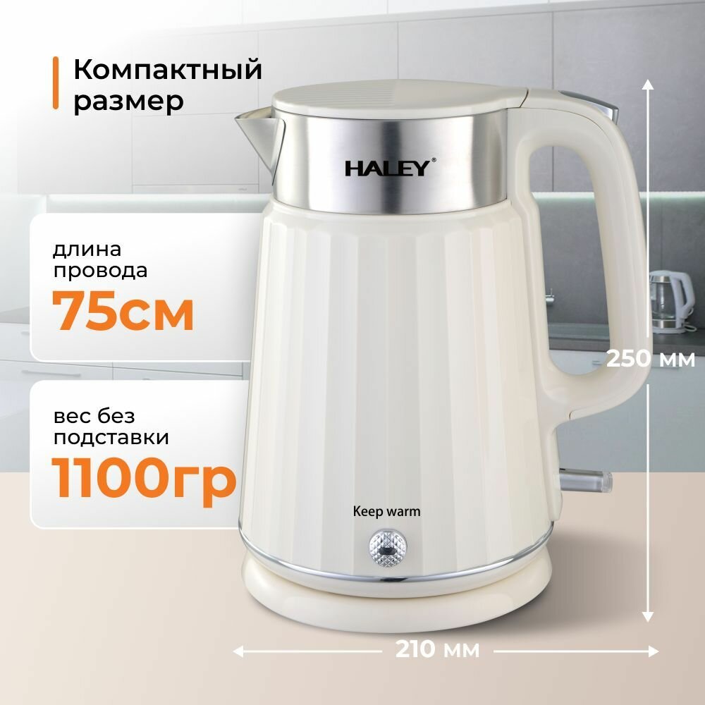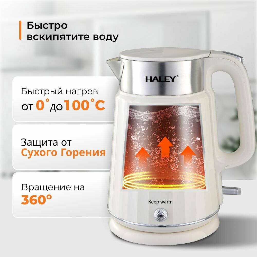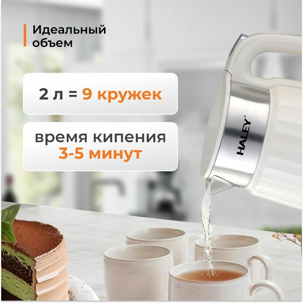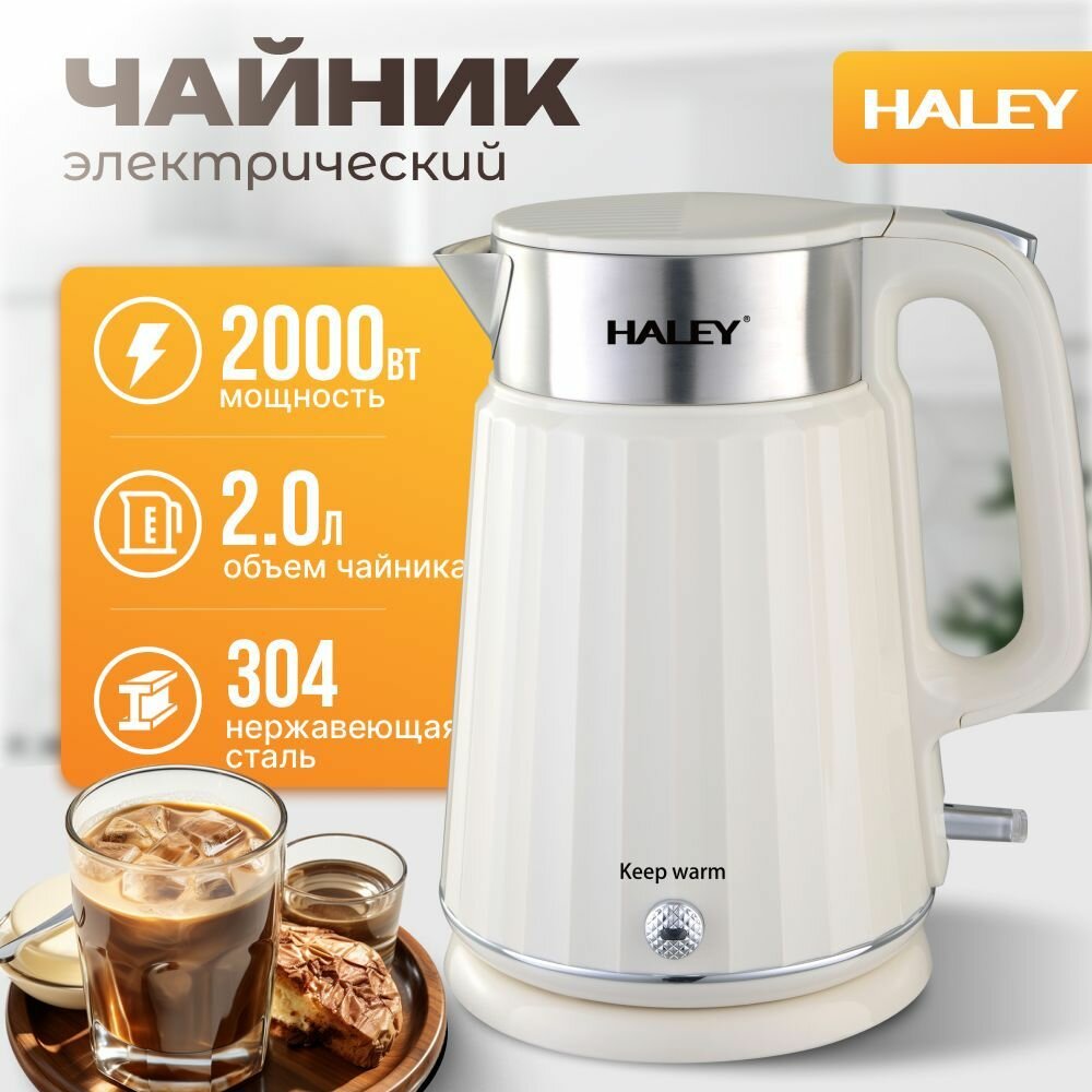 Электрический чайник HALEY-8931 мощный бежевый чайник объемом, объемом 2.0 л, мощностью 2000 Вт, обеспечивающий быстрый кипяток и защиту от перегрева. информация: