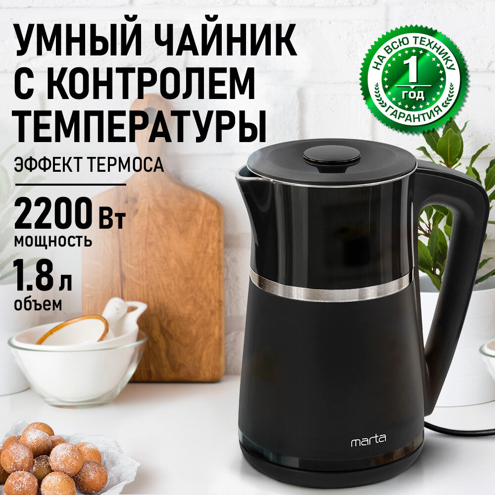 Отзывы на Электрический чайник MARTA MT-KT4652A черный металлический 1,8 л