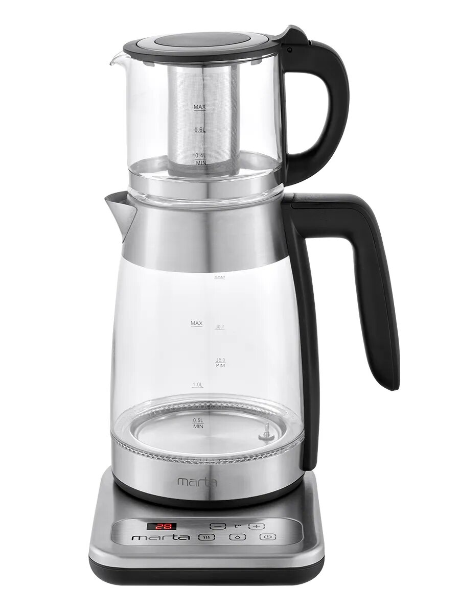 Отзывы на Электрический чайник MARTA MT-KT4655A черный стеклянный с заварником, 1.8 л