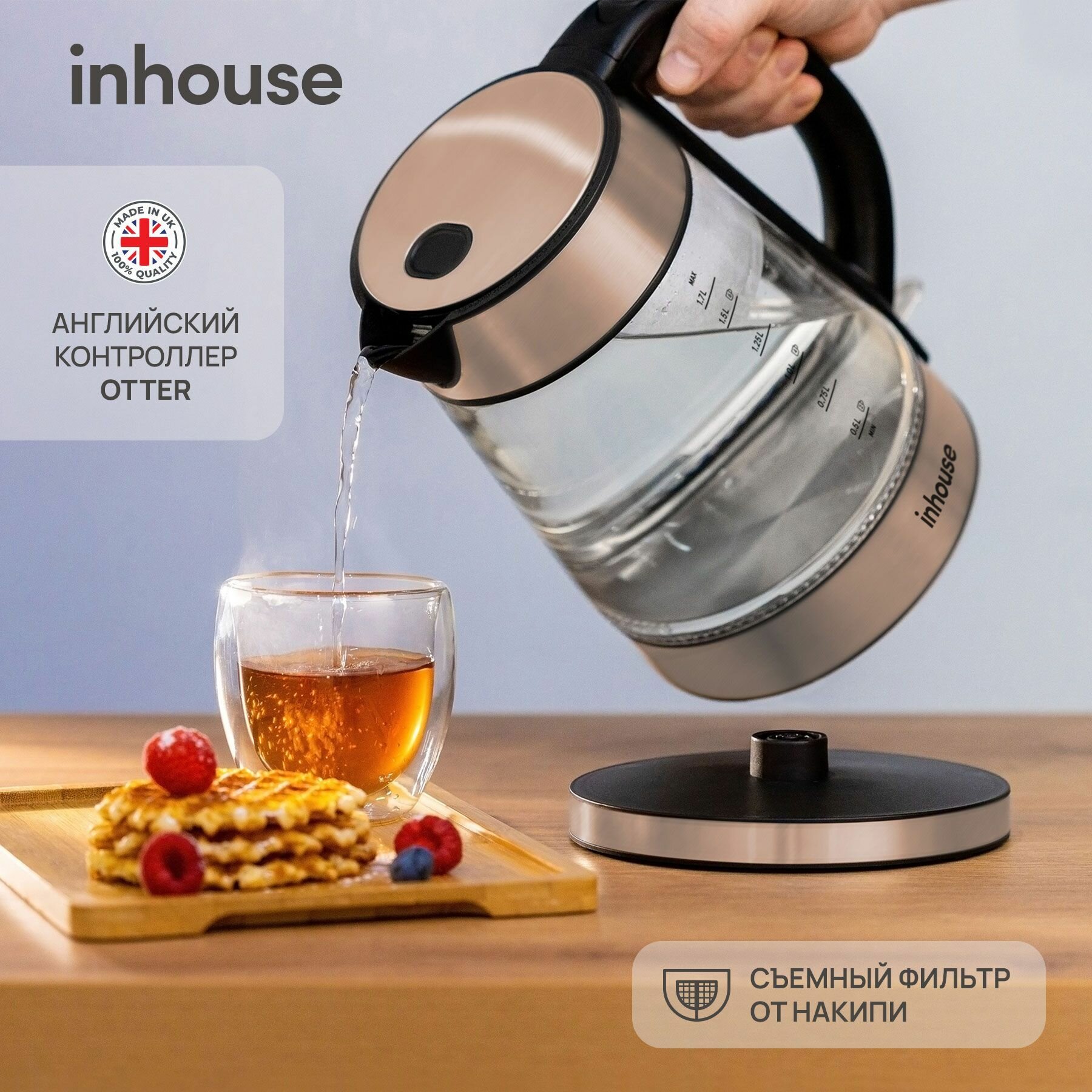 Отзывы на Чайник электрический металлический inhouse (2200 Вт, 1,7 л), золотой