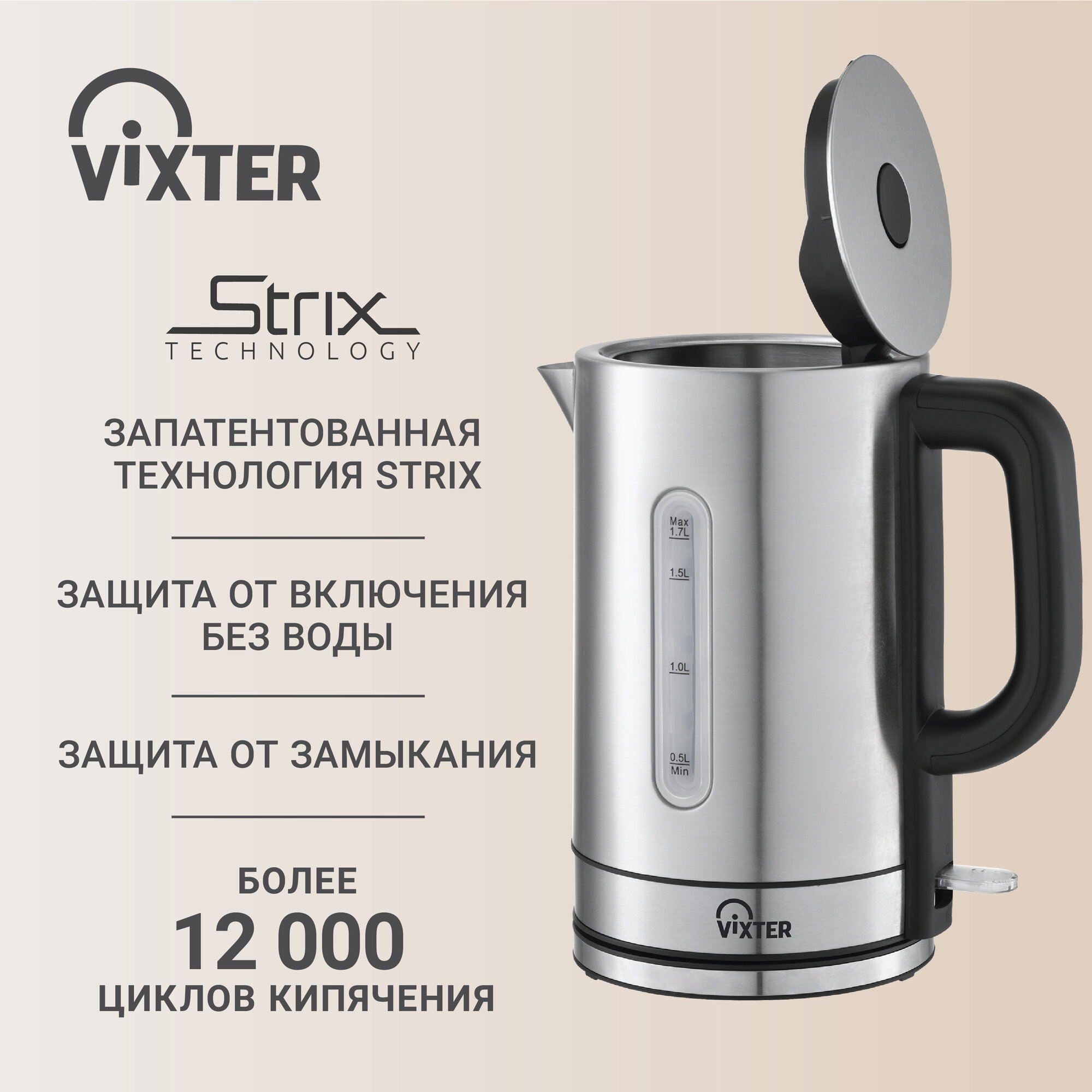 10 цен на Чайник электрический Vixter KT-8300 1,7 литра, 2150Вт, черный/серебристый