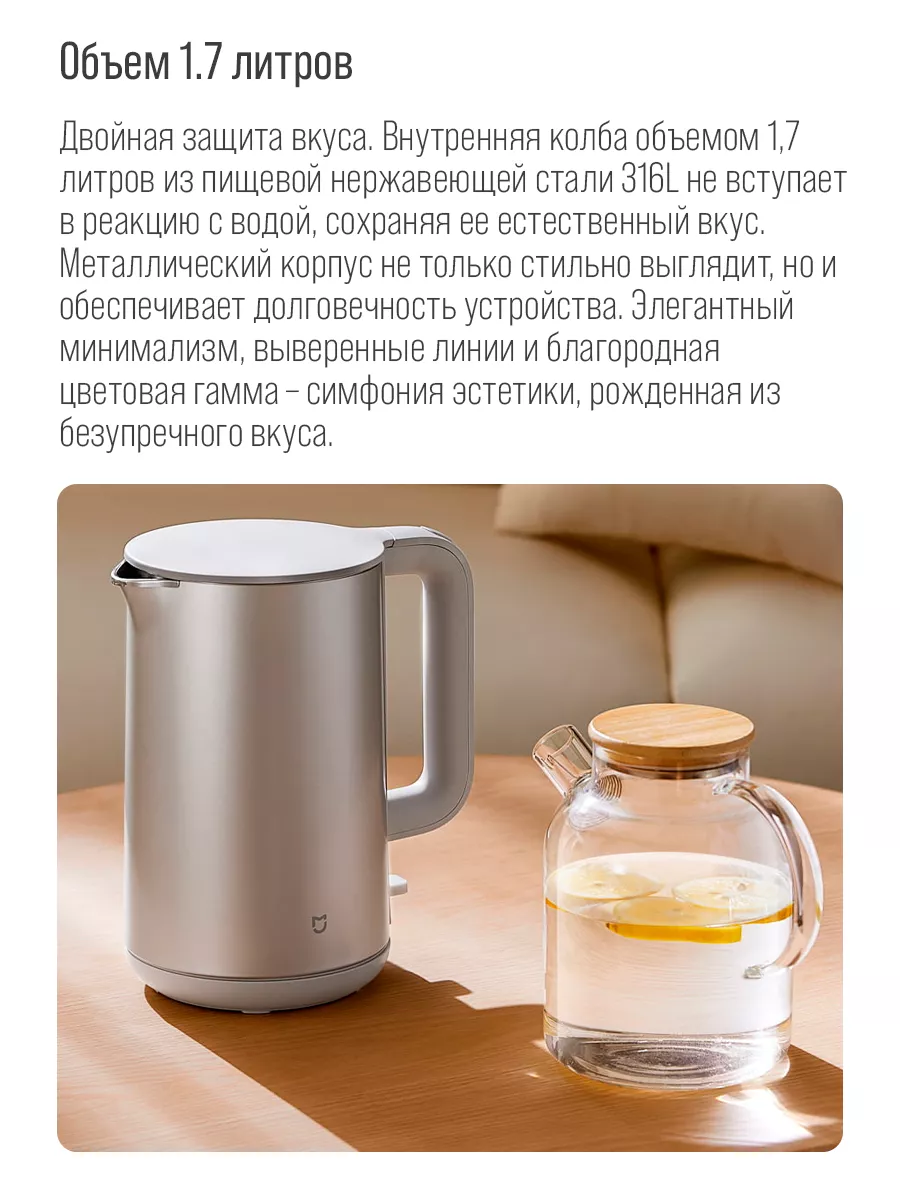 Чайник умный Xiaomi Mijia Thermostatic Kettle 2 Pro (BHR9107EU), Умный термостатический чайник