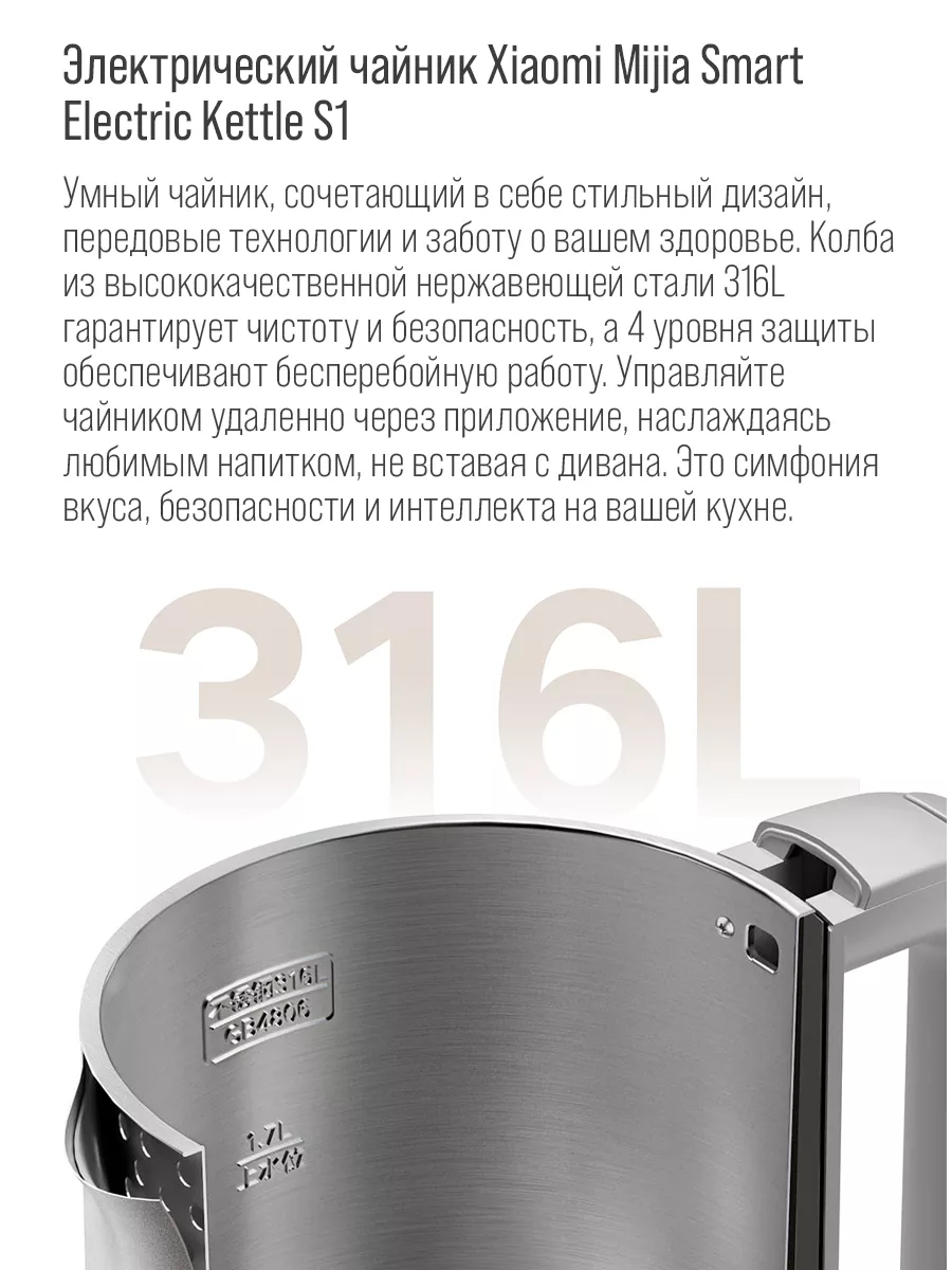 Чайник Xiaomi Mi Kettle S1 + качественный переходник в подарок информация: