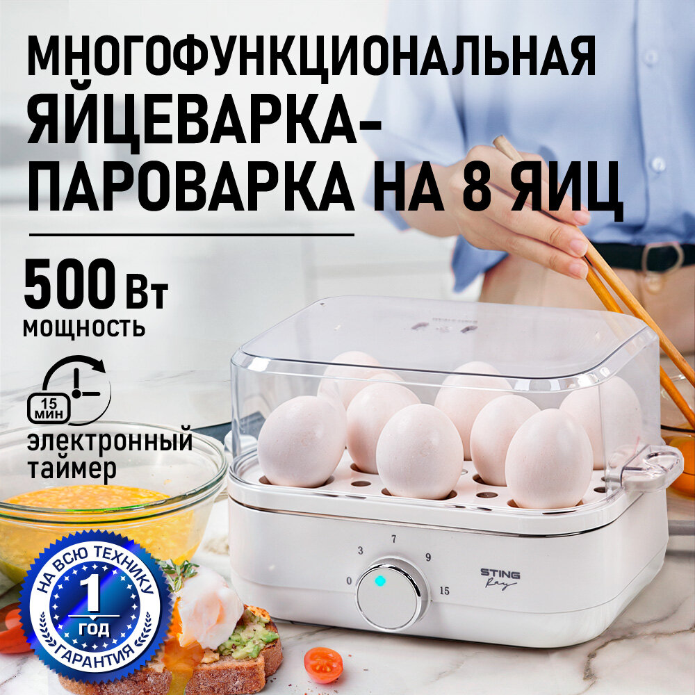 Пароварка яйцеварка STINGRAY ST-EC900B белый информация: