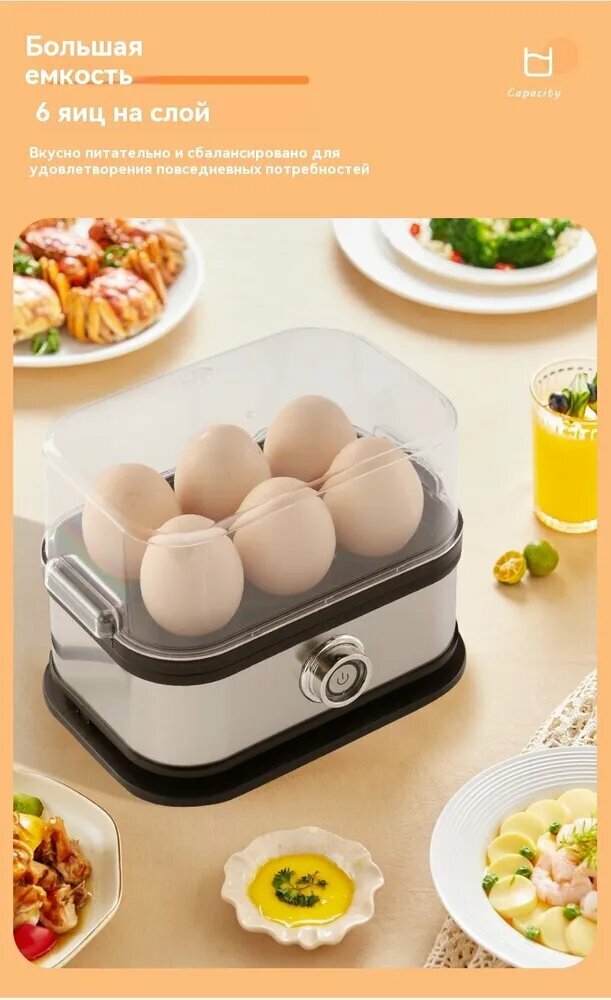 10 цен на Яйцеварка электрическая, нержавеющая сталь, на 6 яиц, 200Вт, серебристая