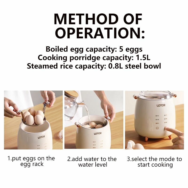 LOTOR Электрическая пароварка для яиц 400 Вт 12 часов Назначение для домашней кухни информация: