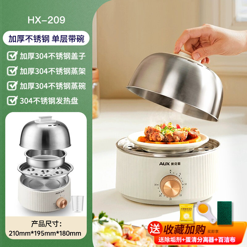 | Дополнительная информация | пароварка из нержавеющей стали 304, миска из нержавеющей стали 304, крышка из нержавеющей стали 304, пароварочная стойка из нержавеющей стали 304, нагревательная пластина из нержавеющей стали 304, таймер на 30 минут, автоматическое отключение питания, мощность 350 вт, одинарная или двойная комбинация слоев |