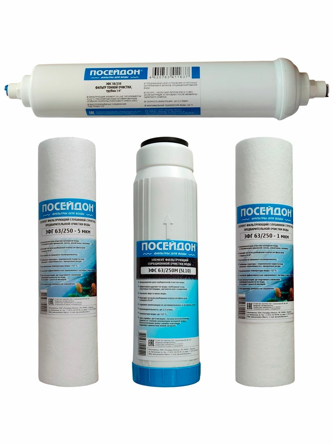 Комплект картриджей 4 ступени для блока предочистки SL10 №202 + фильтр тонкой очистки Посейдон информация: