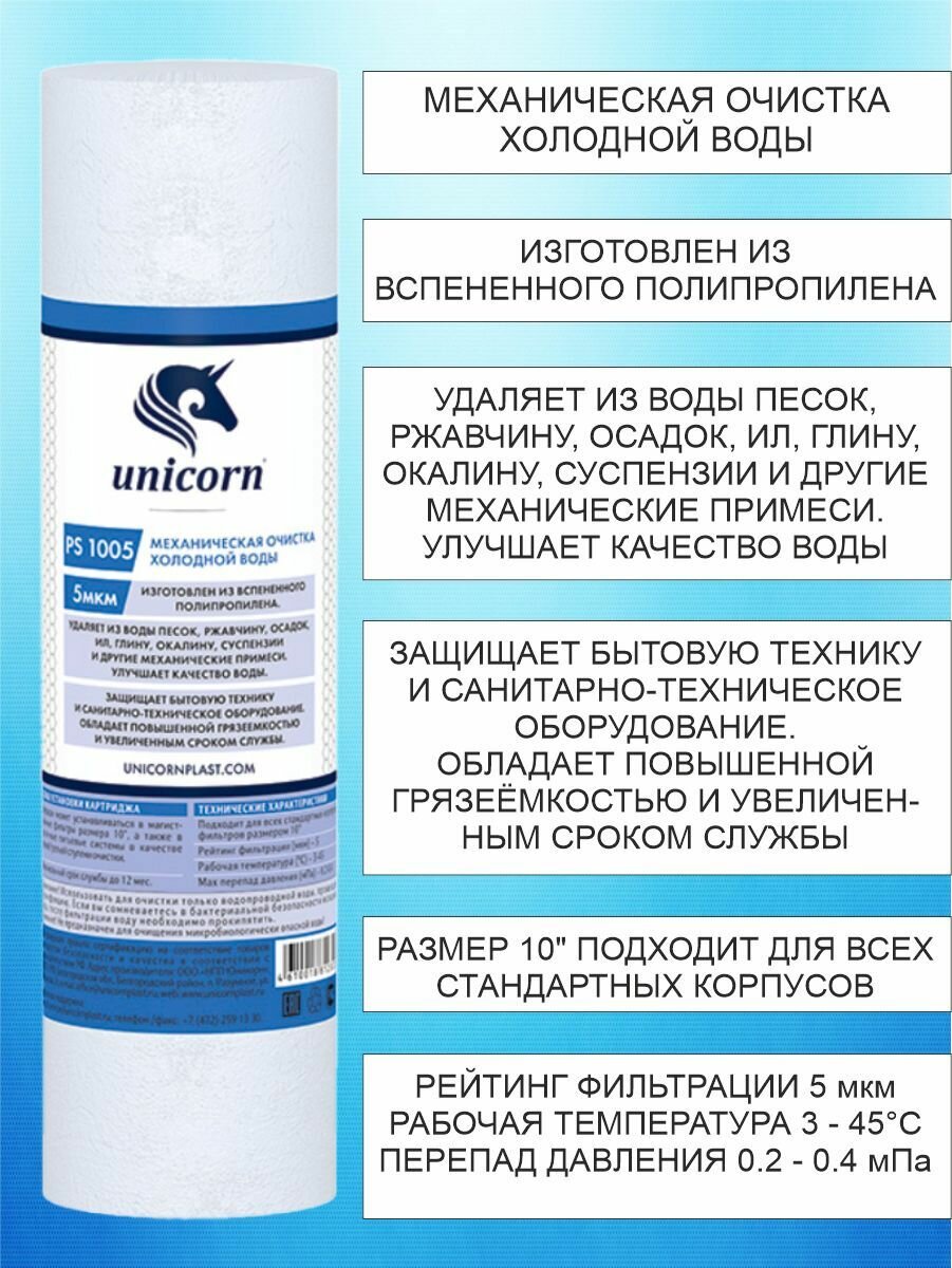 Картридж механический вспененный полипропилен 10 мкм Big Blue 20" Unicorn PS BB 2010 Картридж механический вспененный полипропилен 10 мкм Big Blue 20" Unicorn PS BB 2010