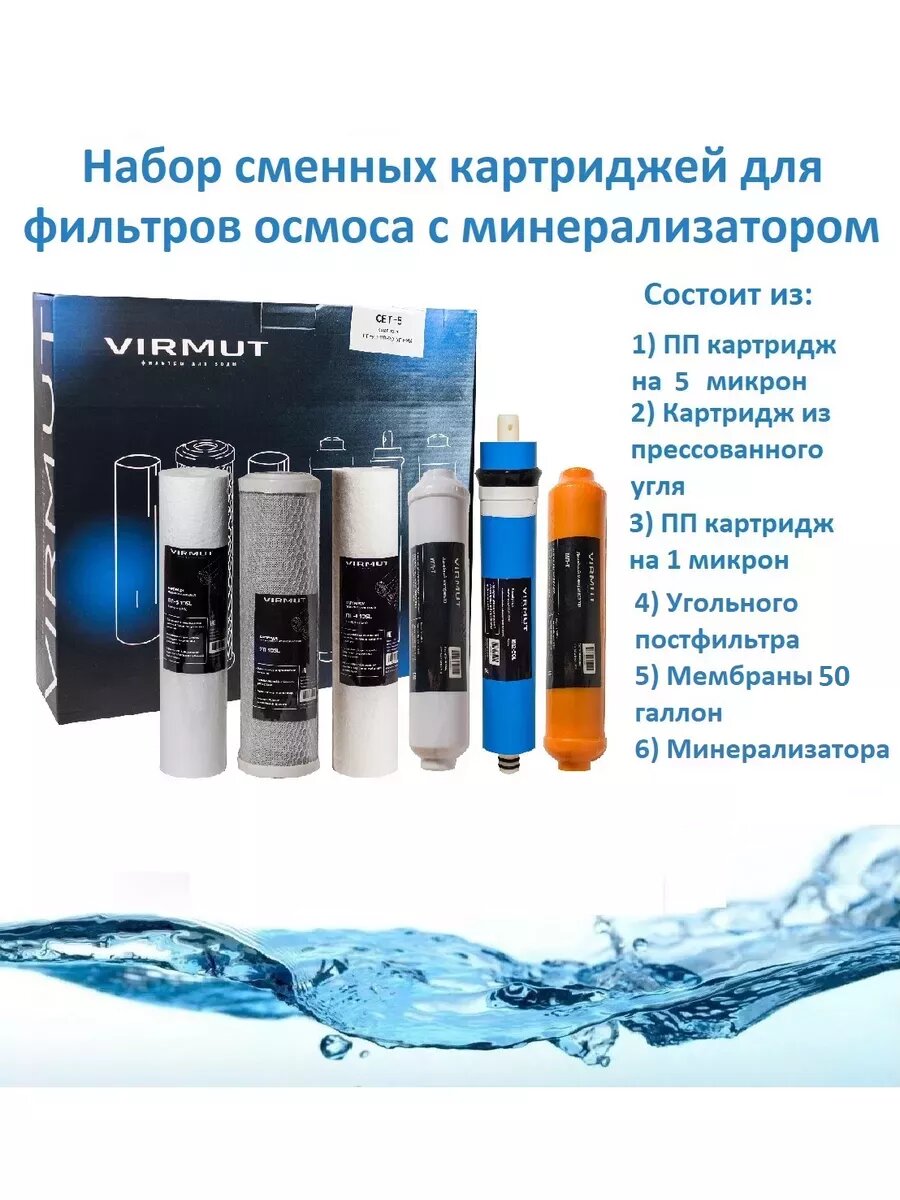 10 цен на Набор картриджей для обратного осмоса Осмо 6 к-6 с мембраной, сменные фильтра обратного осмоса с мембраной и минерализатором