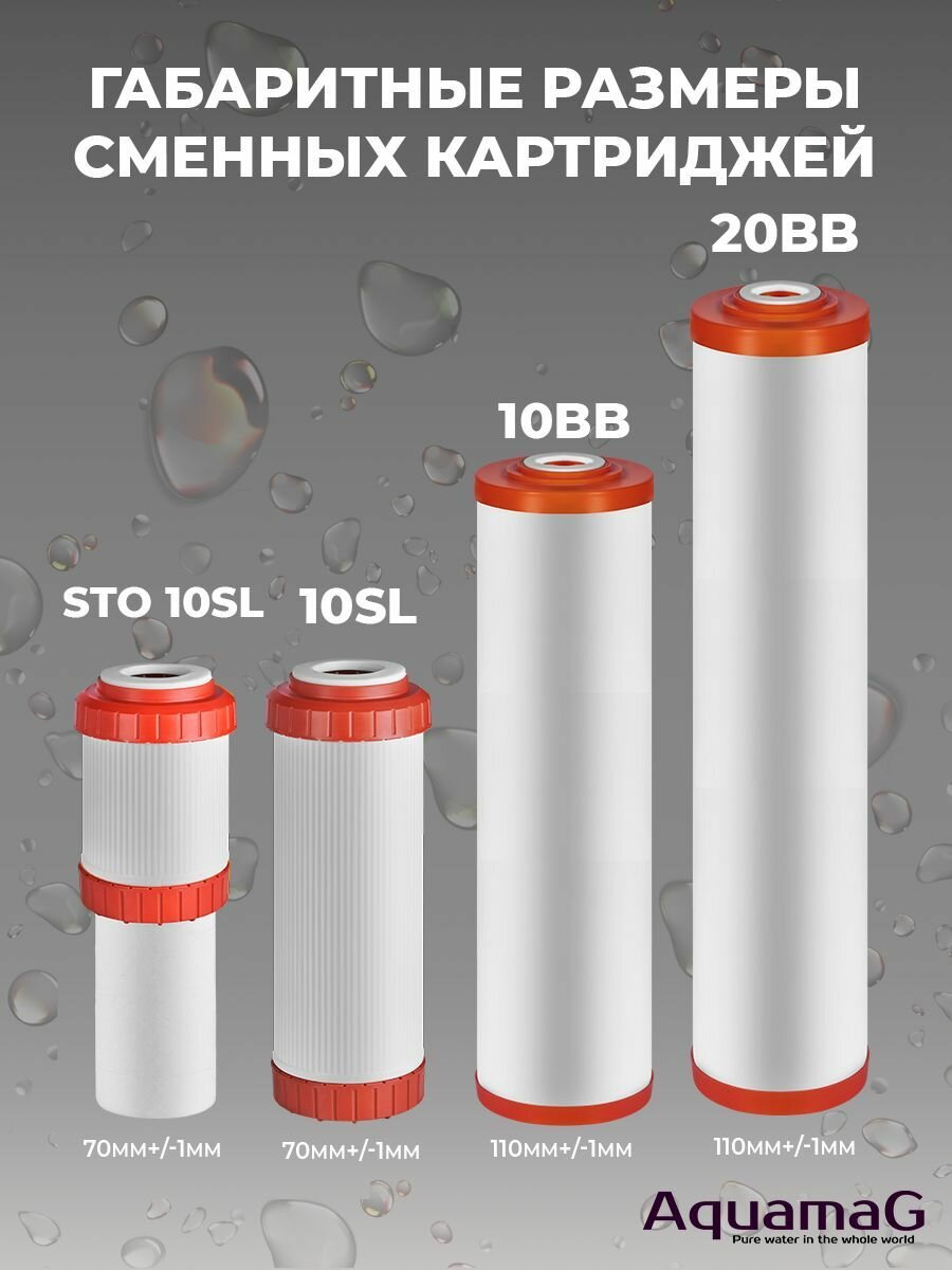 Картридж для фильтра воды 3 в 1 ST 10SL (ионообменная смола, вспененное полипропиленовое волокно, углеродное волокно) 2 шт