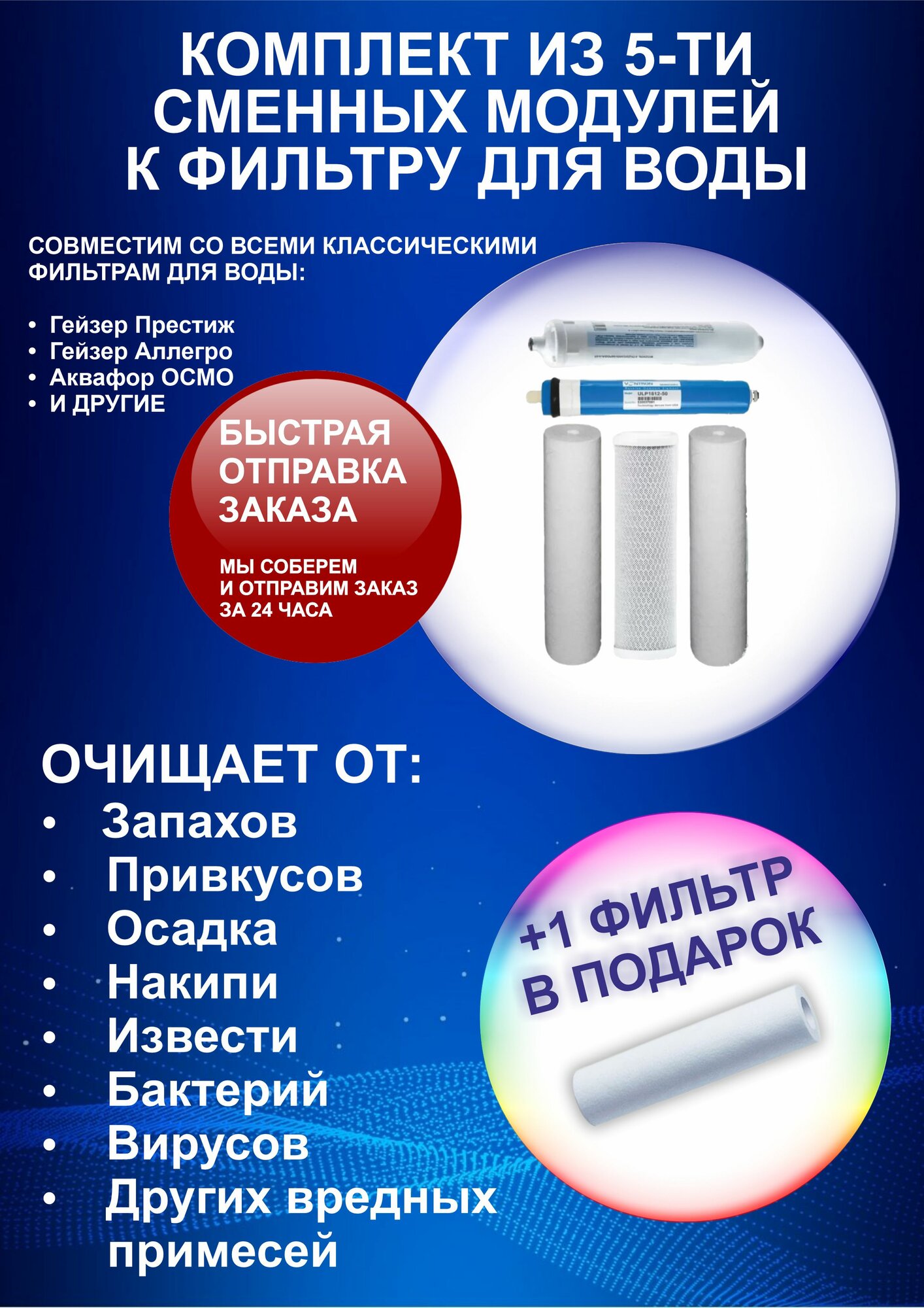 10 цен на Комплект сменных к осмо 50, Гейзер престиж Аллегро, Барьер и др. фильтрам обратного осмоса + дополнительный модуль