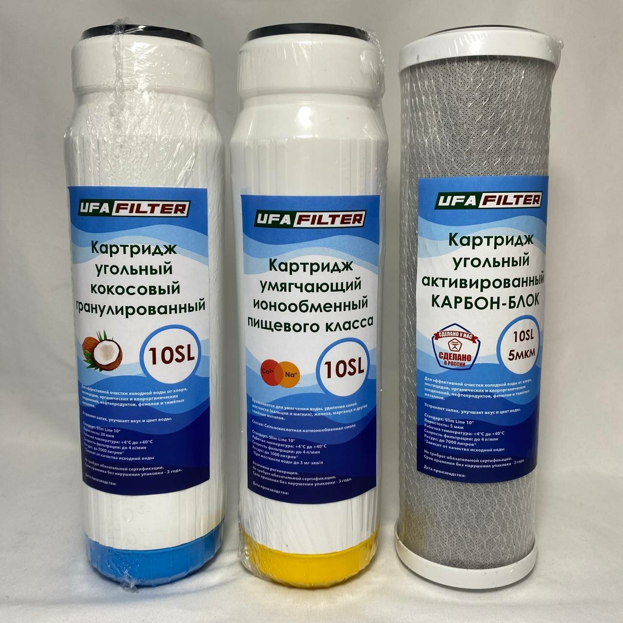 Отзывы на Комплект картриджей умягчающий против накипи для проточного фильтра 3 шт. UFAFILTER 10SL с двойной угольной очисткой