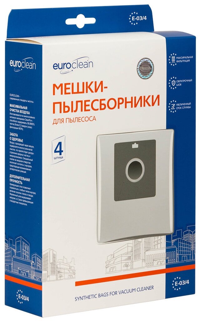 10 цен на Euroclean Мешки пылесборники для пылесоса SAMSUNG, 4 шт, синтетические, многослойные, повышенной фильтрации, Euroclean E-03/4, код оригинального мешка: VP-77